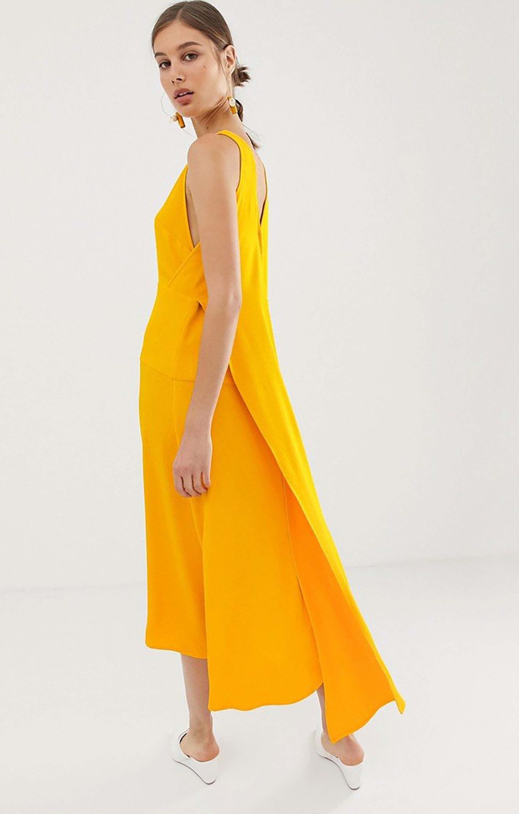 Little Mistress Gold Leaf Midaxi With Shirred Waist