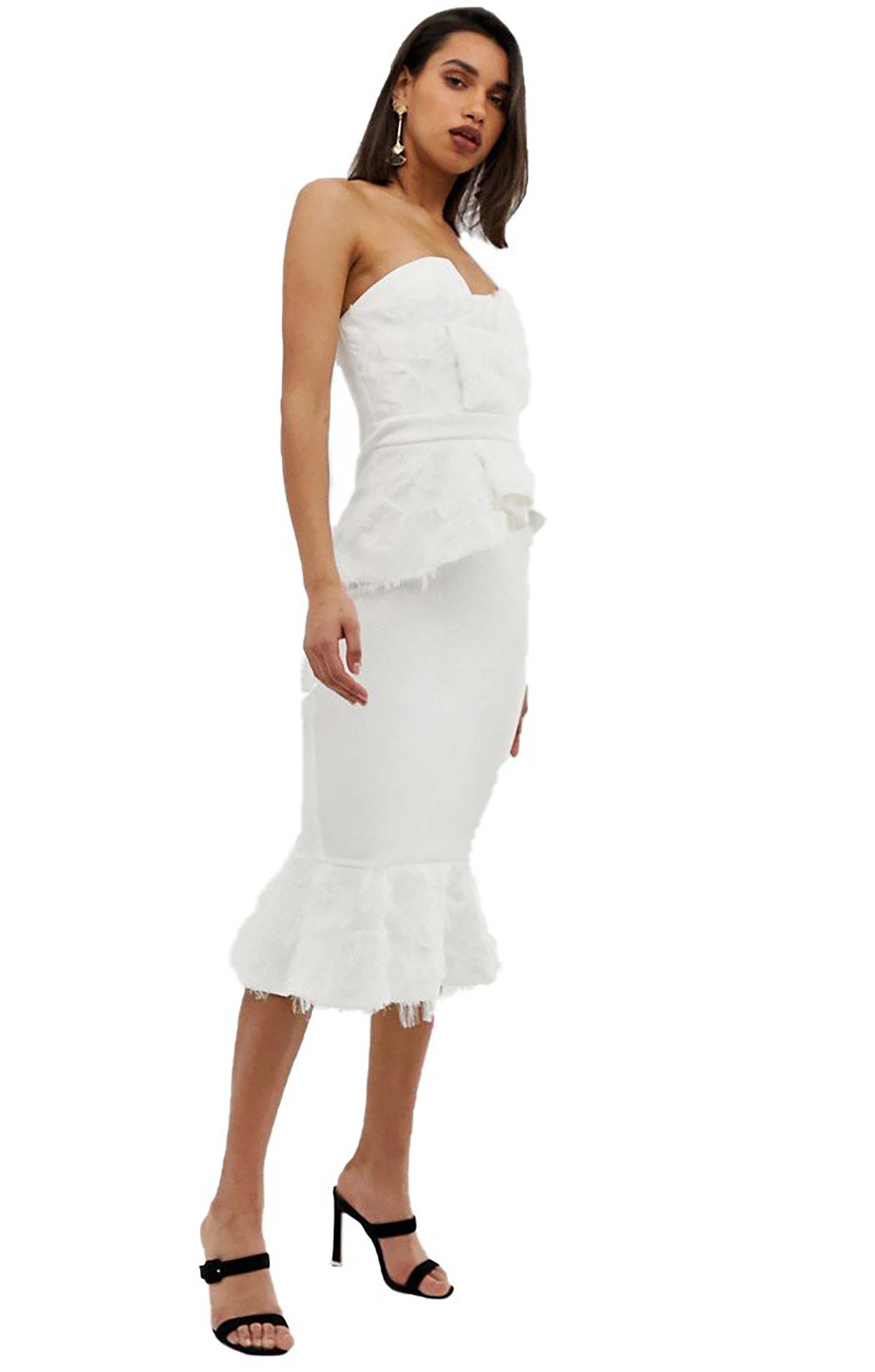 MissPap White Maeve Premium Satin Feather Maxi Dress