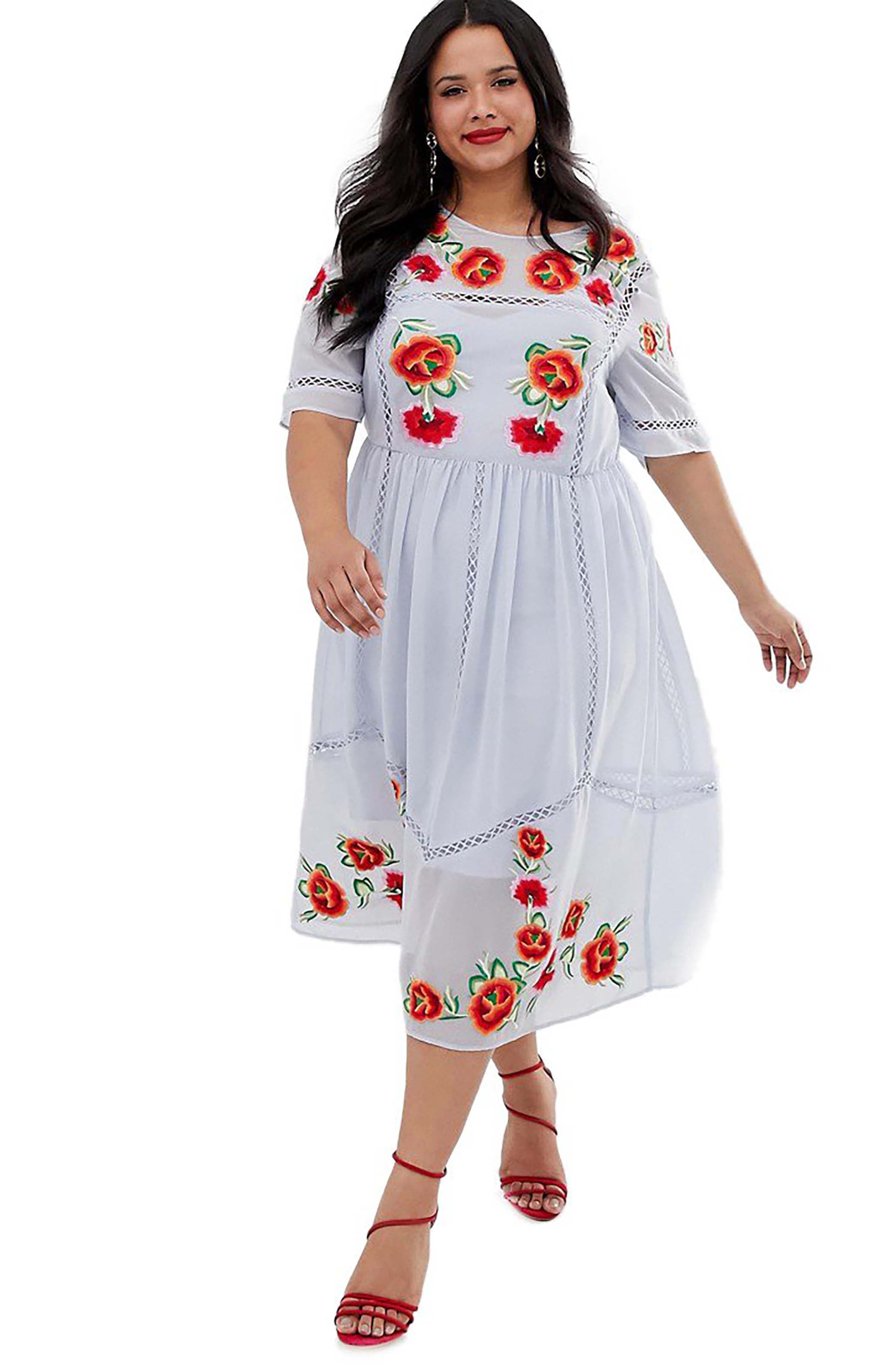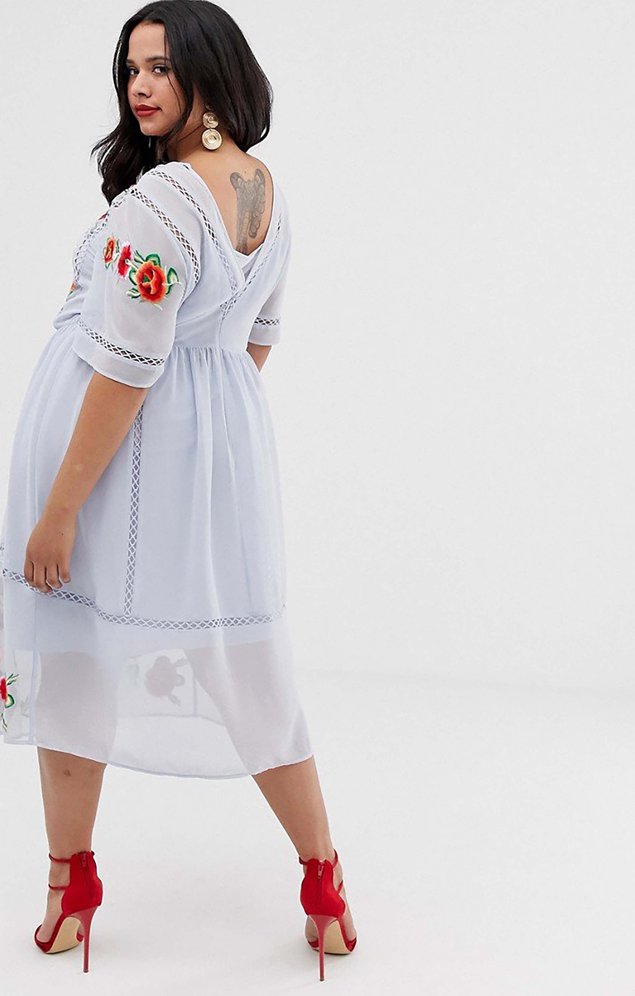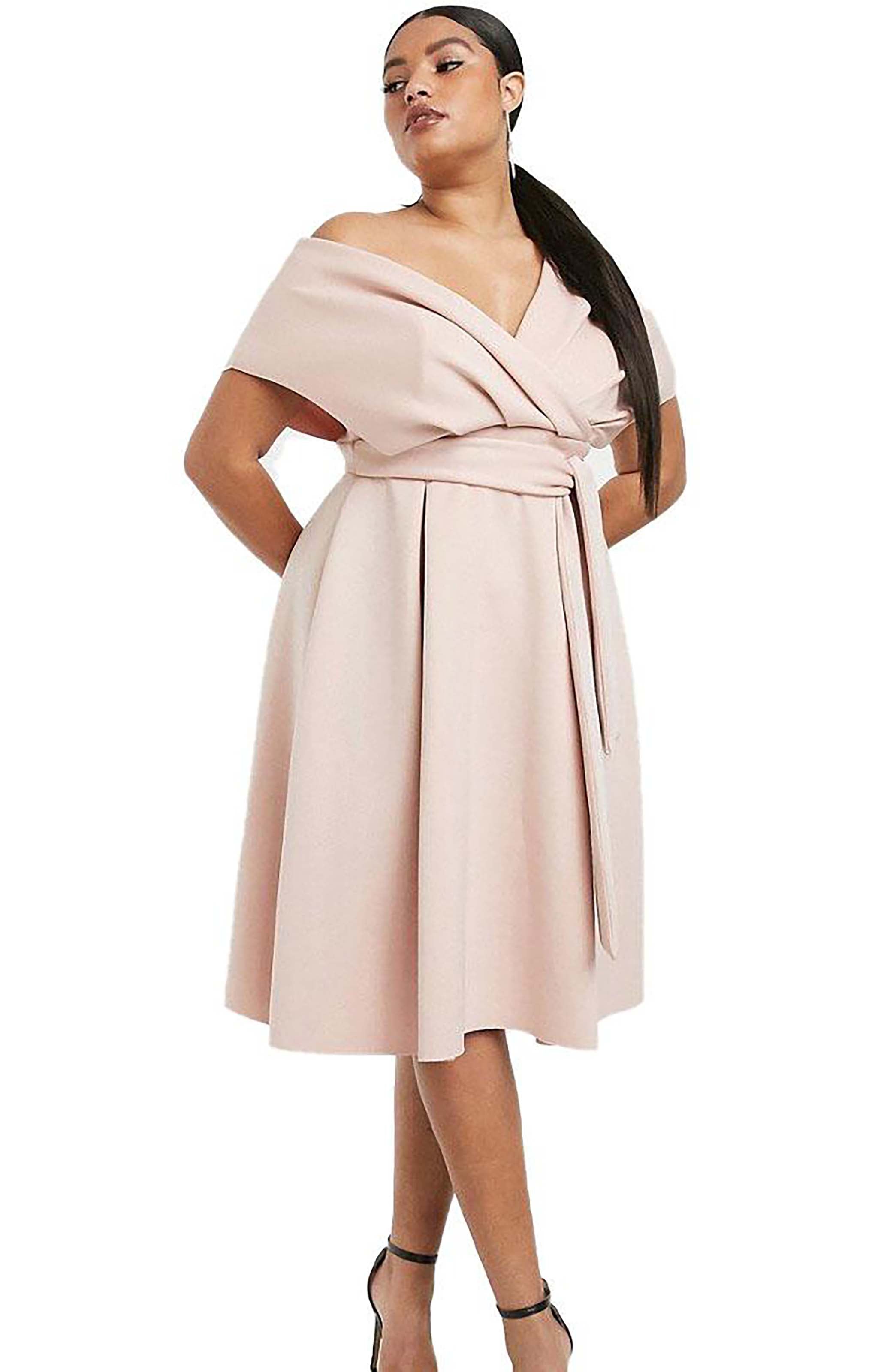 French Connection Echo Organza Mix Frill Strapless Midi Dress – dresses by French Connection, available to rent from Hirestreet