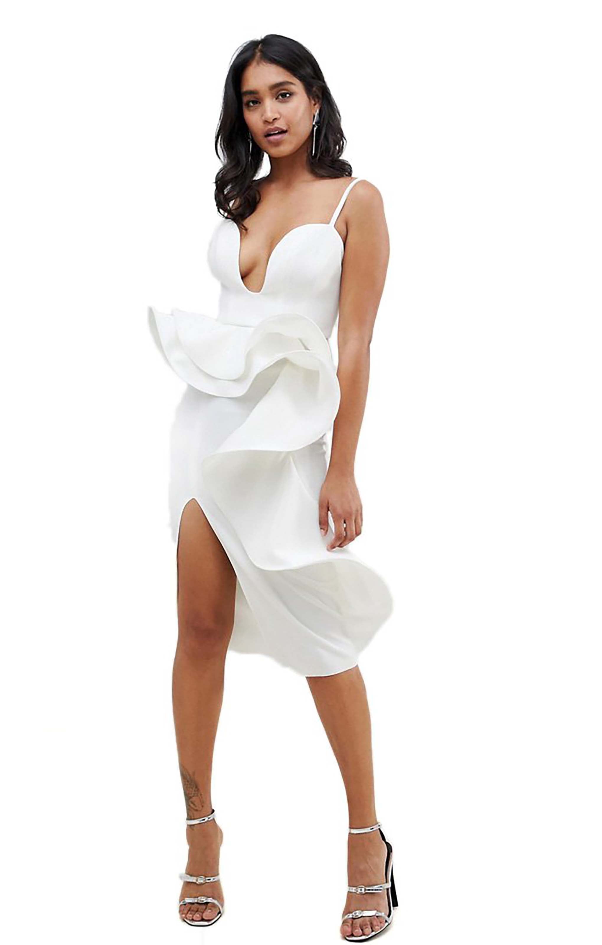 Turn heads in this premium U-bar maxi dress from ASOS DESIGN. Designed with structured wired cups and romantic ruffle detailing, it combines support with flowing elegance.
