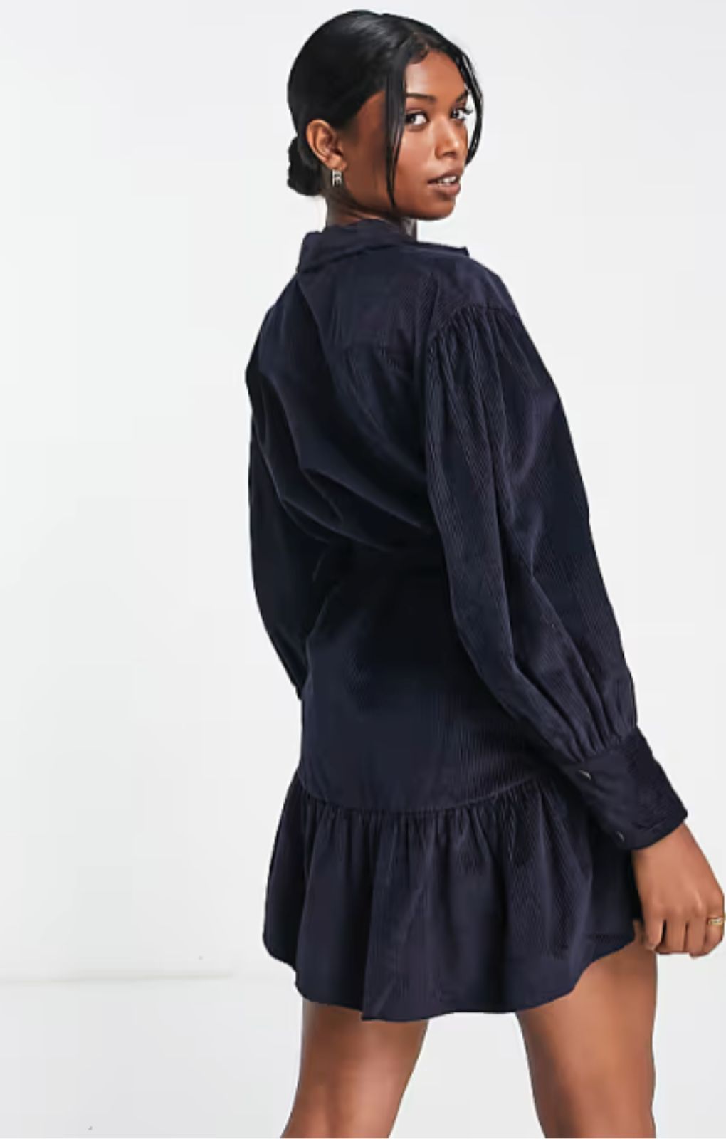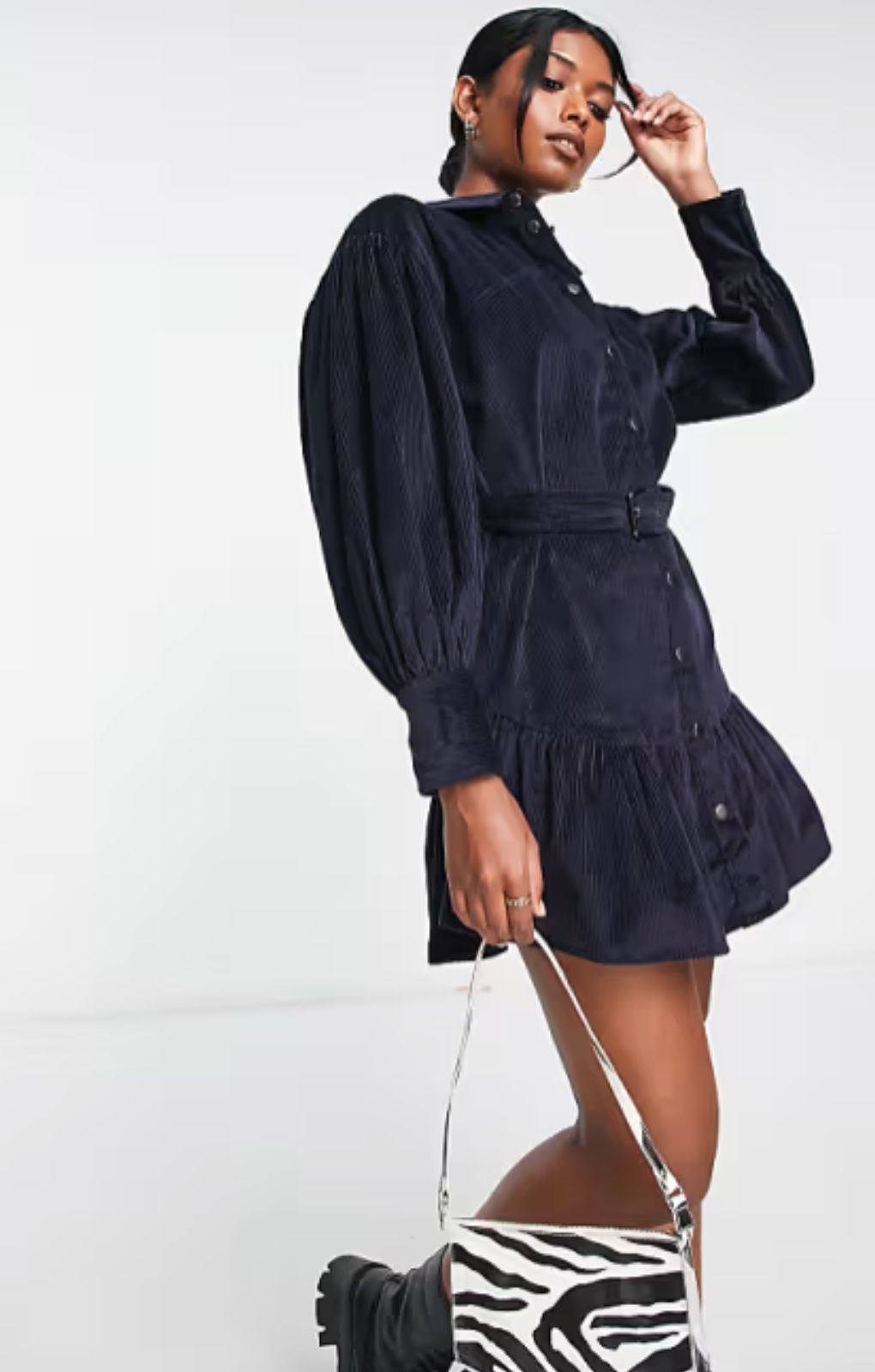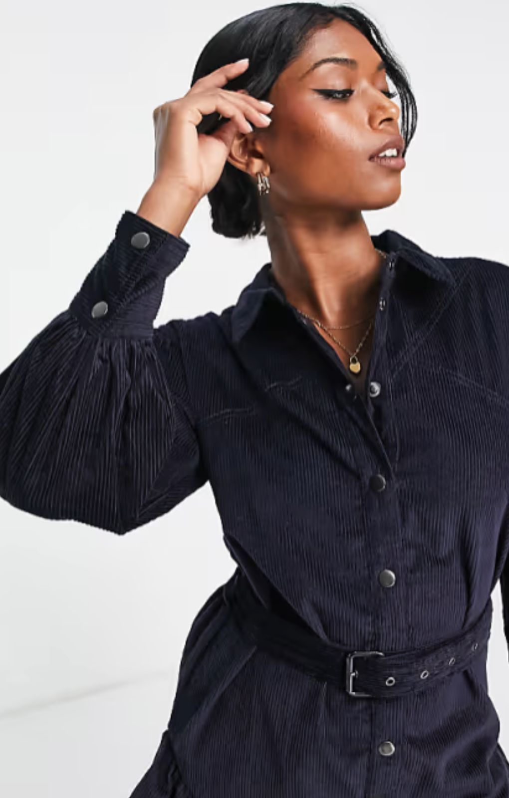 ASOS DESIGN Cord Mini Shirt Dress With Buckle In Navy