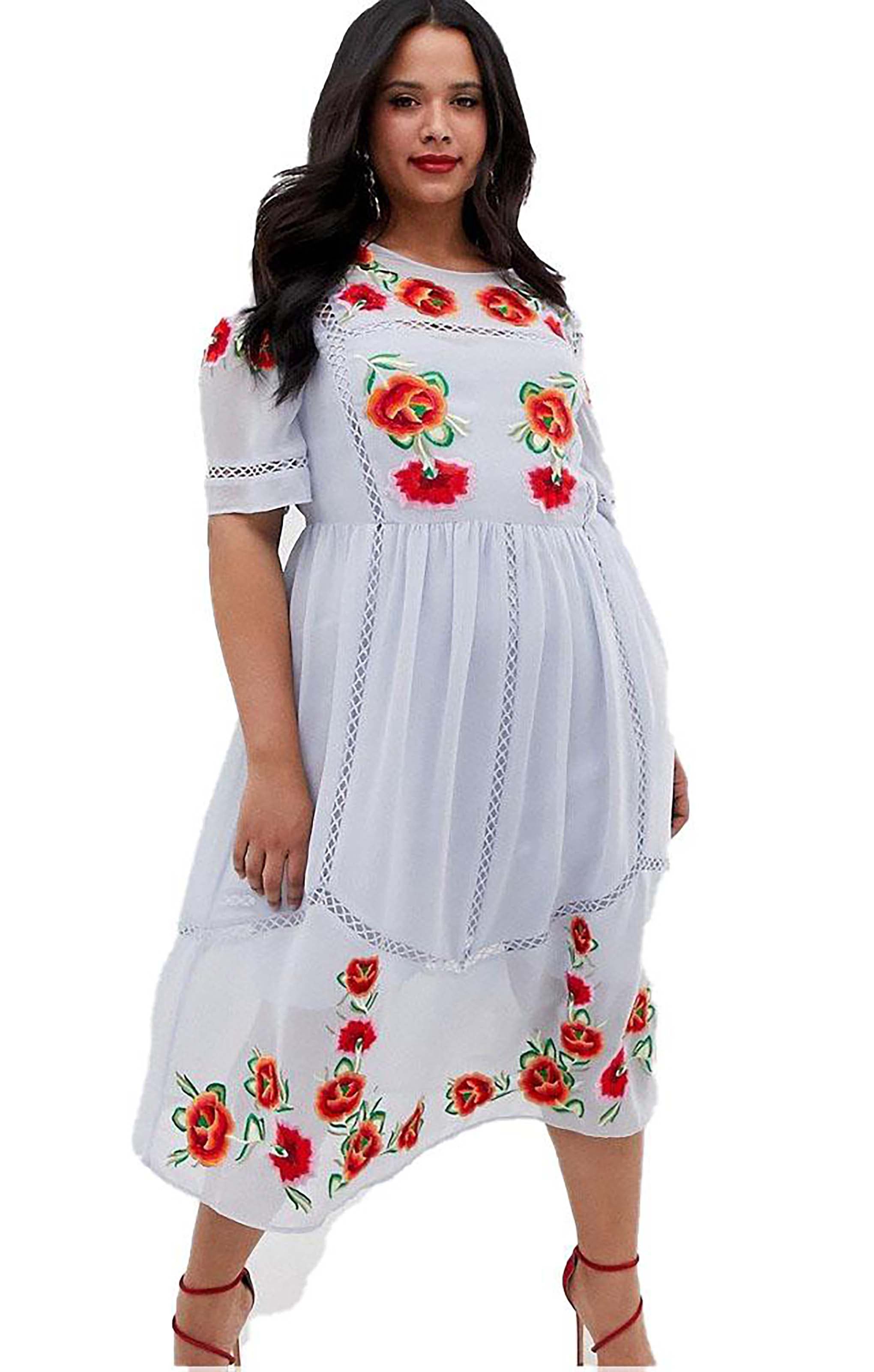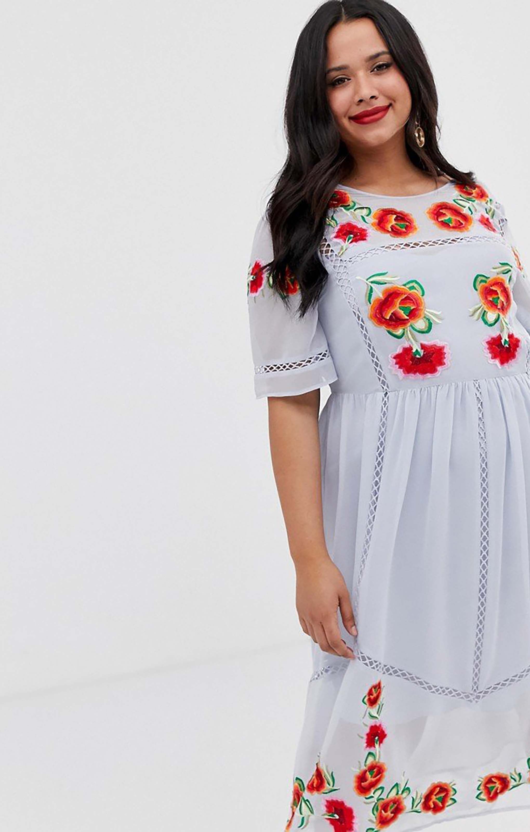 Effortlessly stylish, the ASOS DESIGN Curve Embroidered Smock Midi Dress combines comfort with intricate detailing. Designed for curves, this midi dress features delicate embroidery on a relaxed smock silhouette, making it perfect for casual occasions, brunches, or daytime events where you want a touch of elegance without compromising comfort.