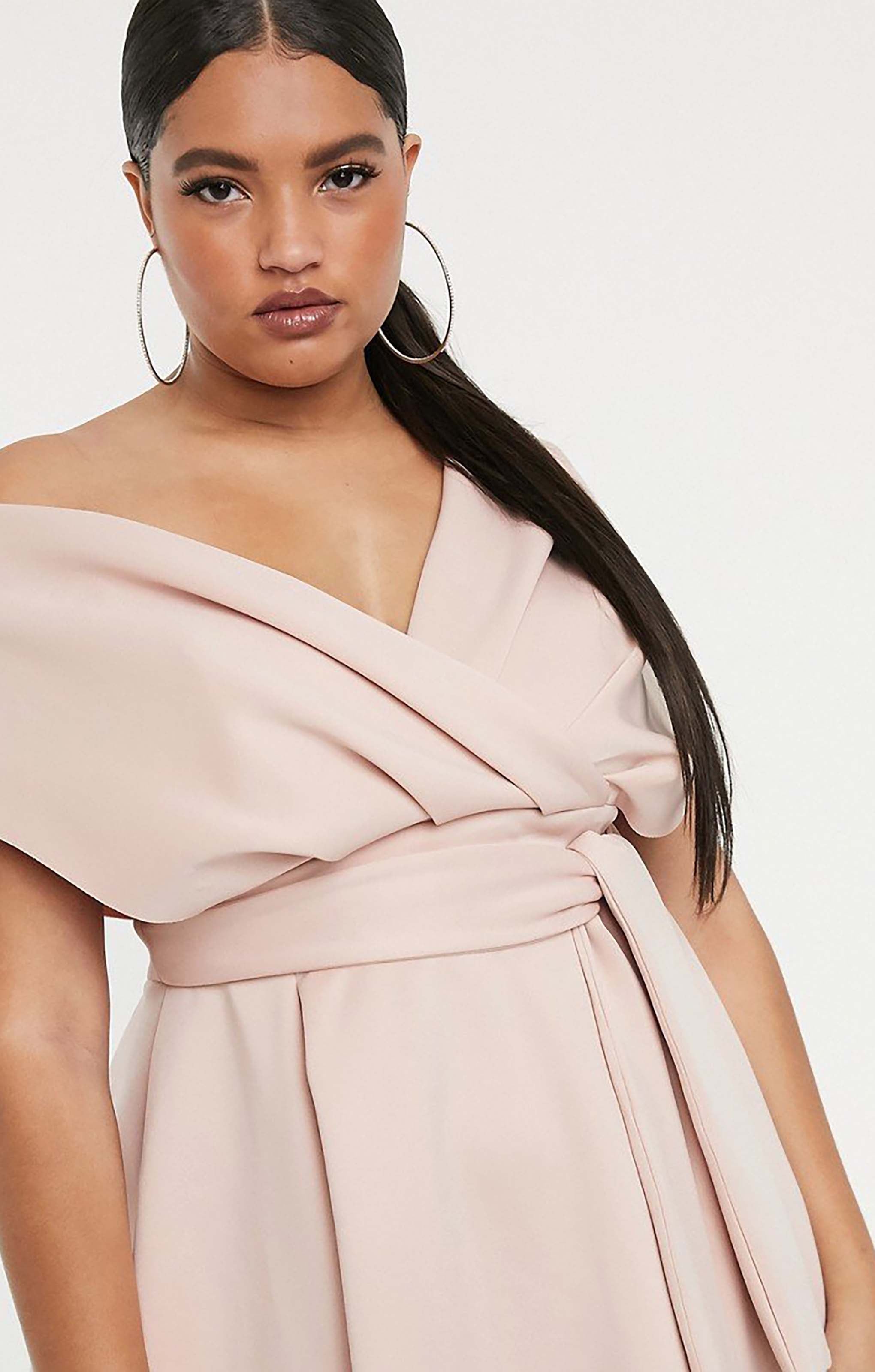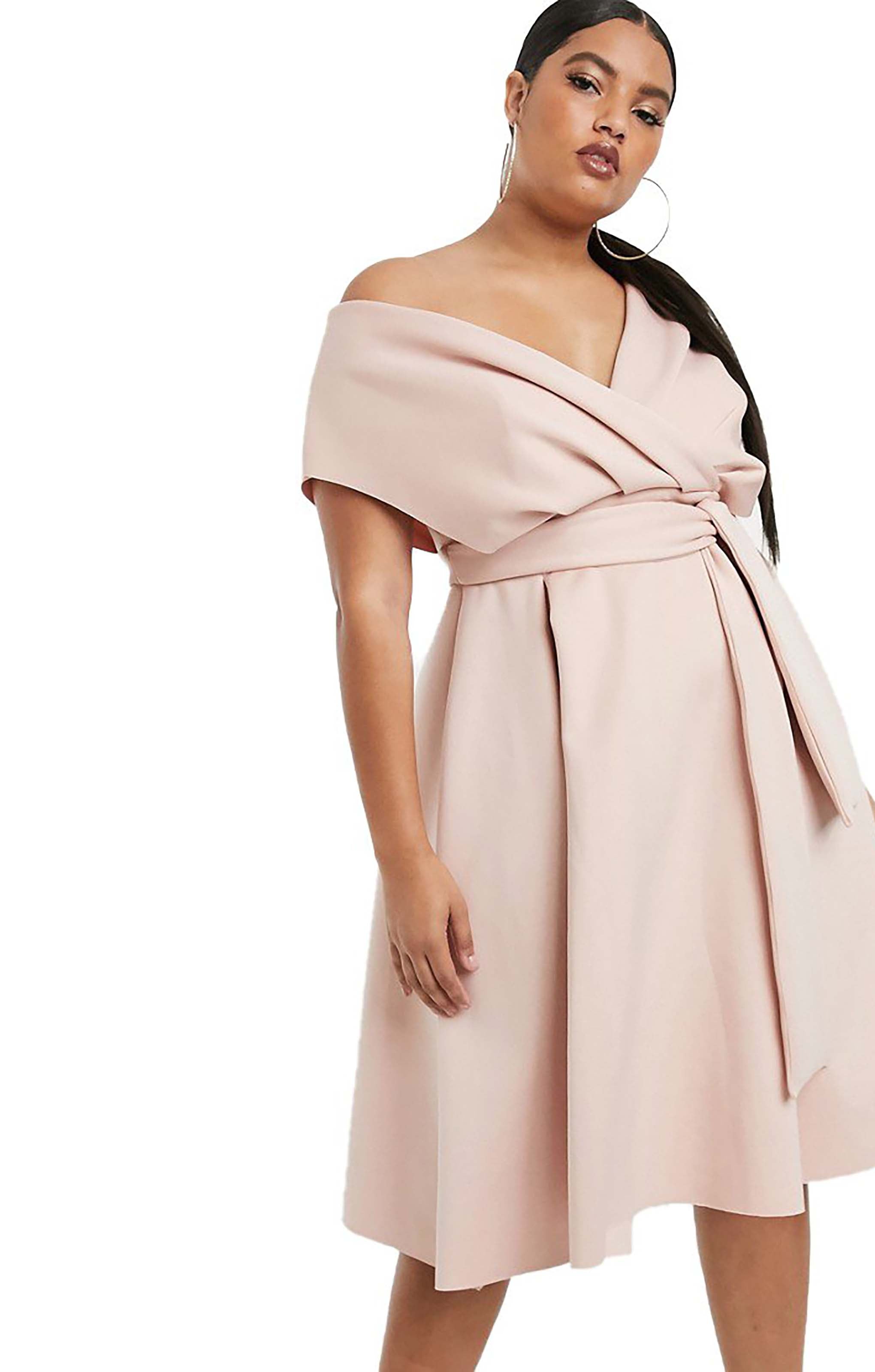 Elegant and flattering, this ASOS DESIGN Curve prom dress features a chic fallen shoulder design and a figure-enhancing silhouette. Perfect for proms, formal events, or special occasions, it celebrates your curves with effortless style.