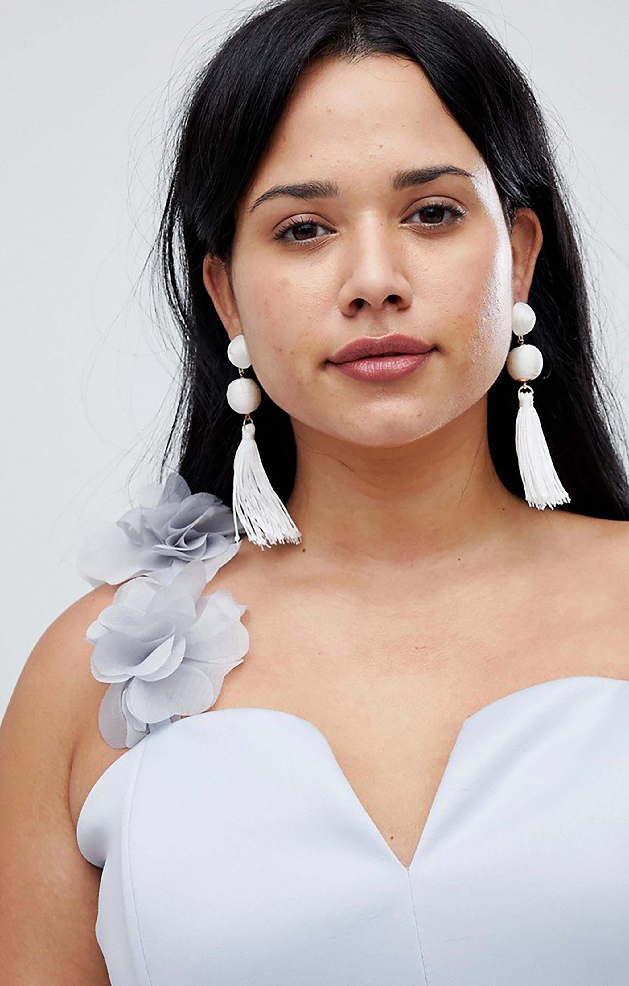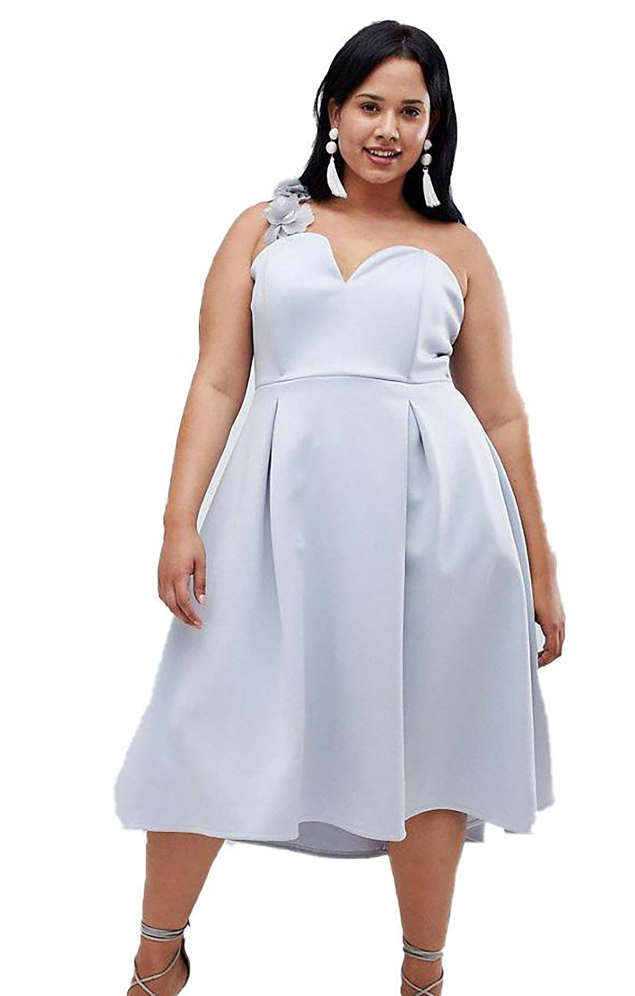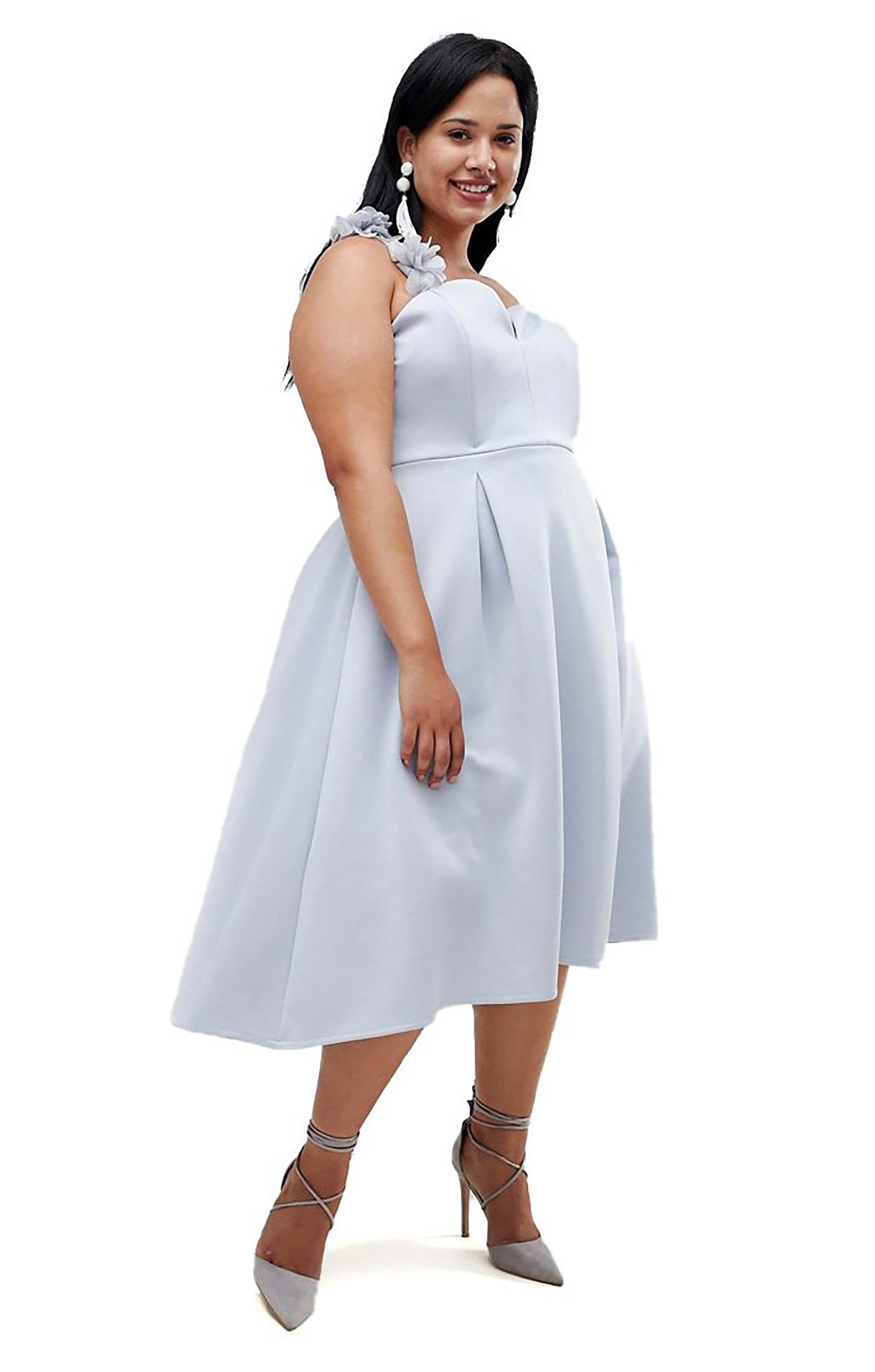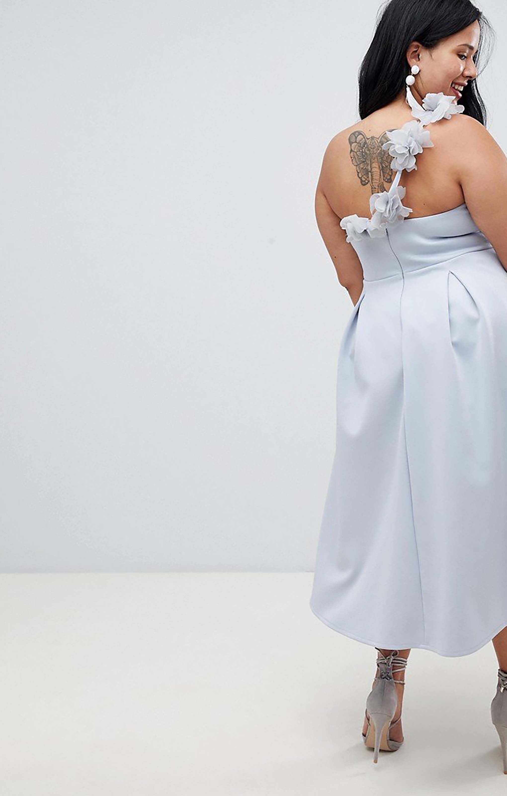 Celebrate style in this premium plus-size piece from ASOS DESIGN Curve. With delicate strap details and a statement corsage embellishment, this dress offers elegance and attitude for special events or an upscale night out.