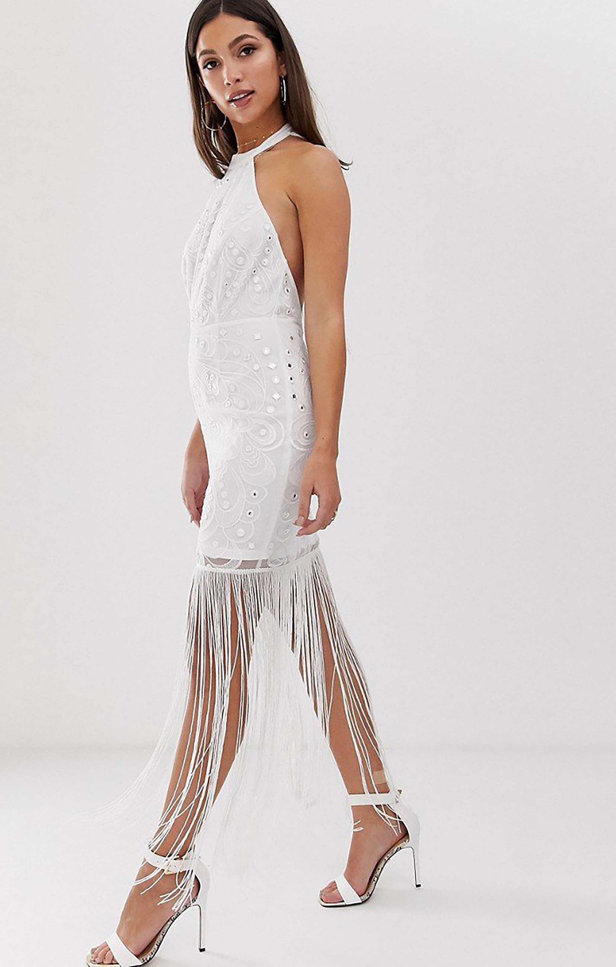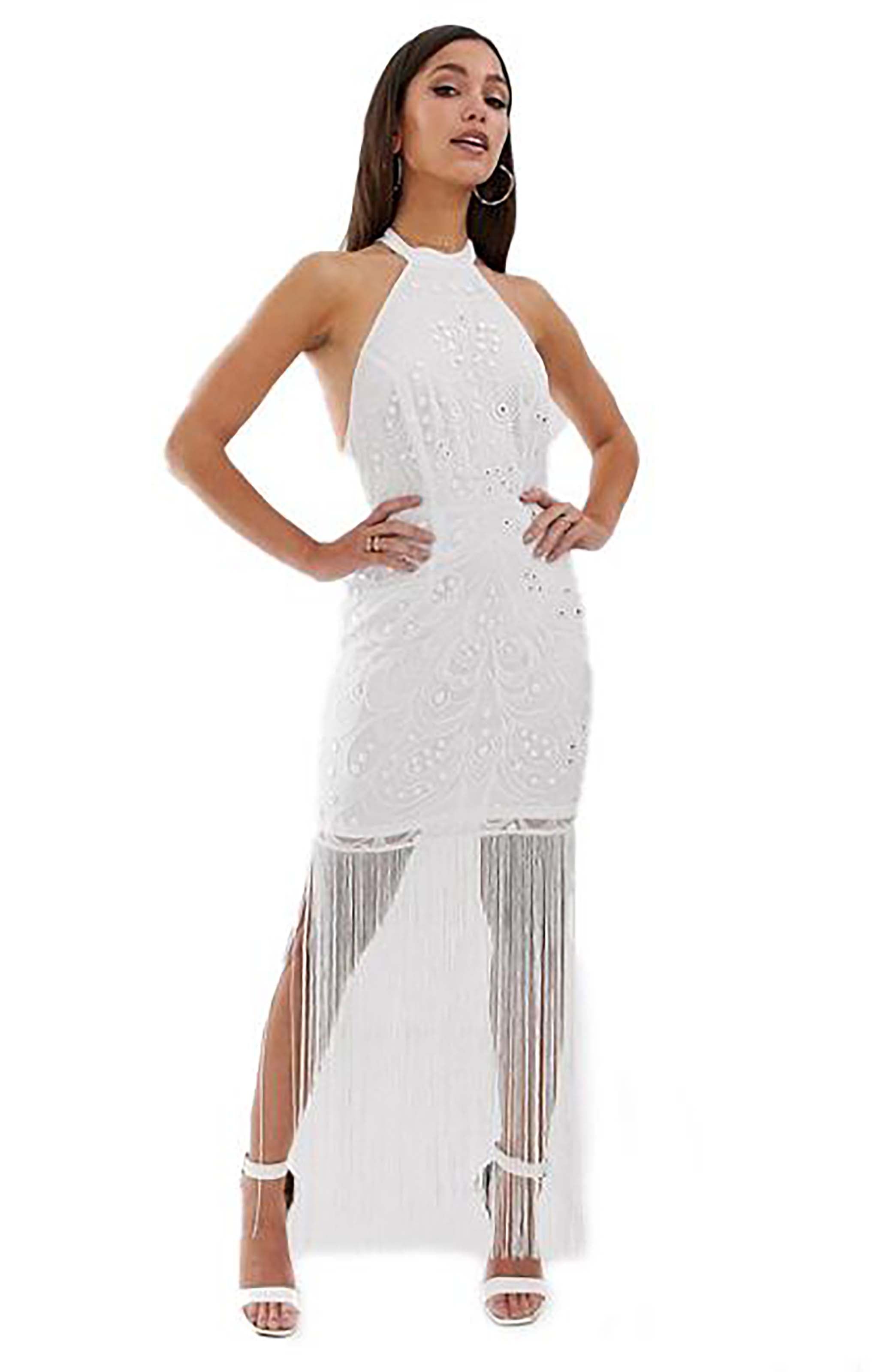Bring playful sophistication to your party wardrobe with this ASOS DESIGN halter mini dress. Featuring intricate embroidery and fun fringe detailing, it’s designed to move with you while showing off a flattering silhouette. Perfect for nights out, special occasions, or whenever you want to make a statement