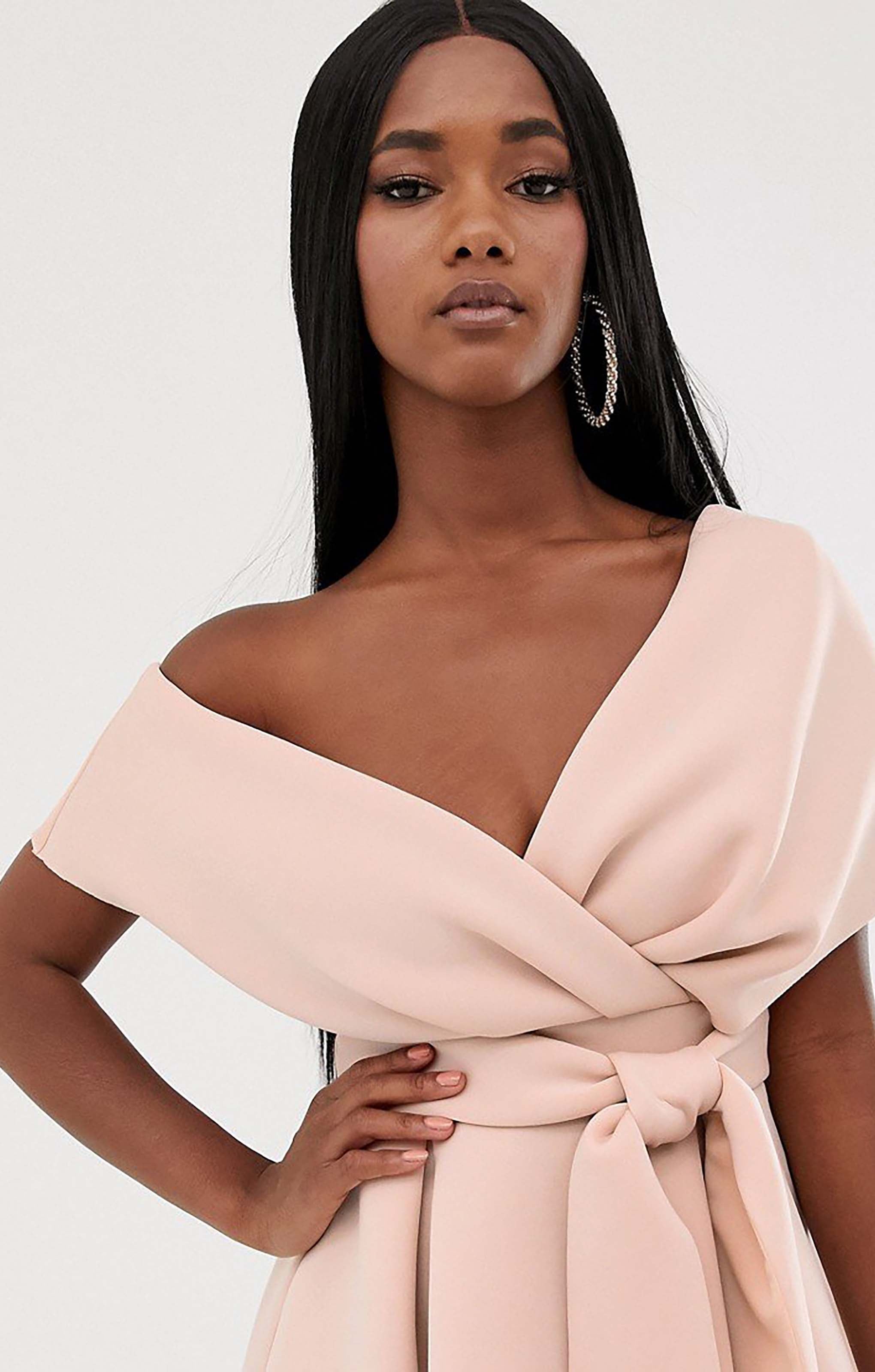 Make an entrance in this elegant off-shoulder prom dress. Designed with a flattering fallen shoulder neckline, a fitted bodice, and a flowing skirt, it blends timeless glamour with modern charm — perfect for your special night.