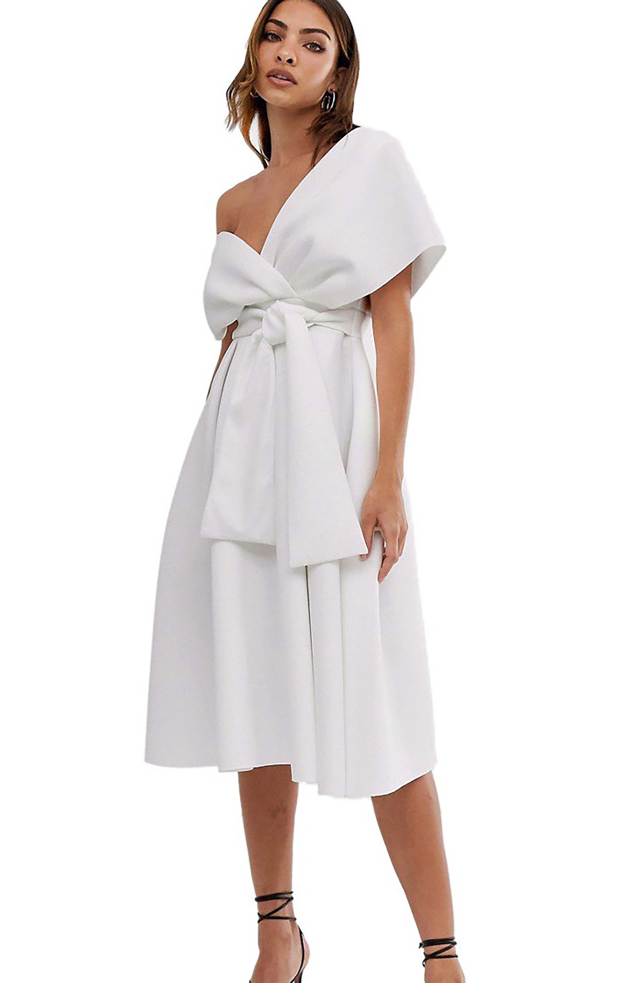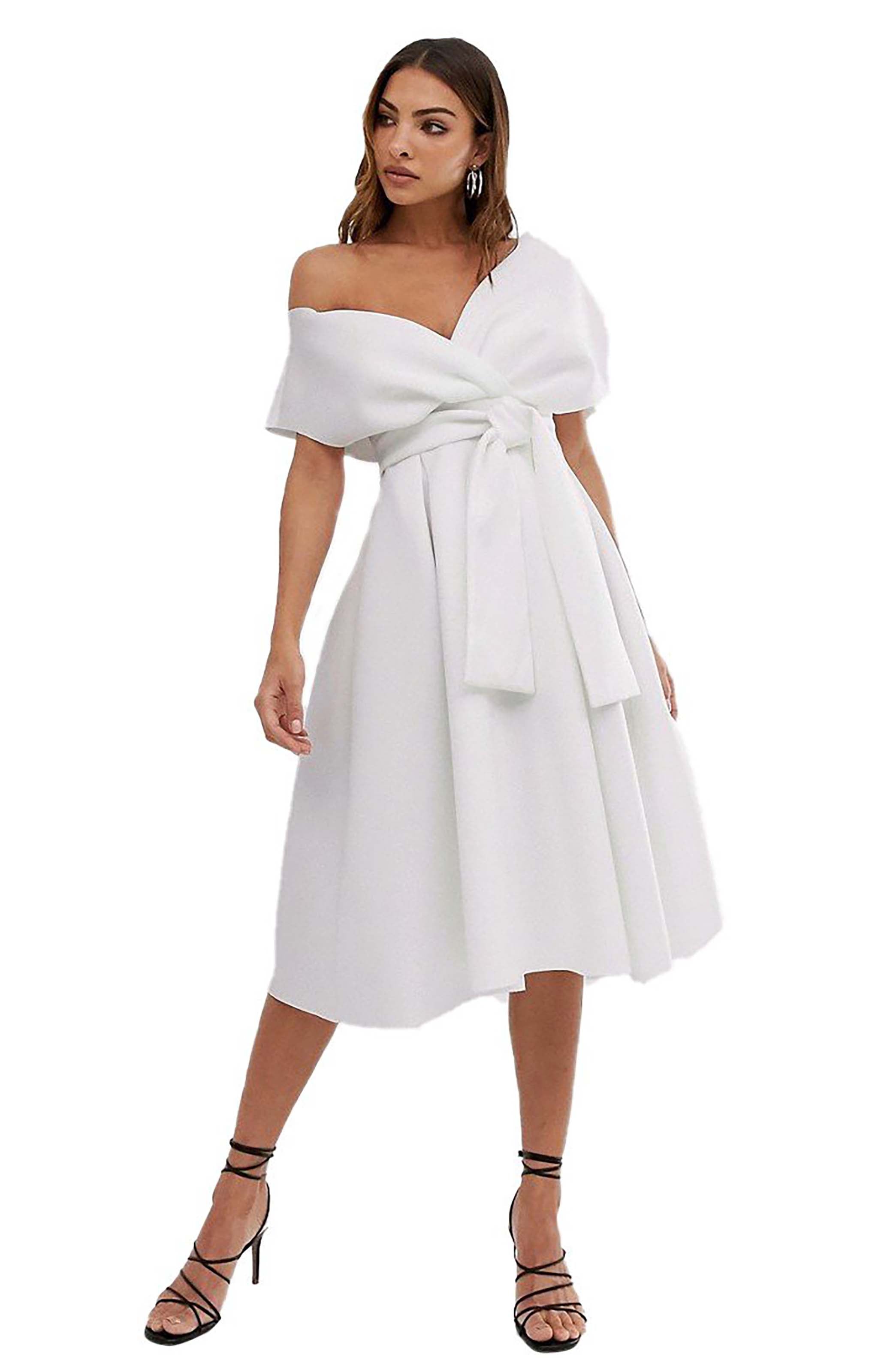 ASOS DESIGN Fallen Shoulder White Prom Dress