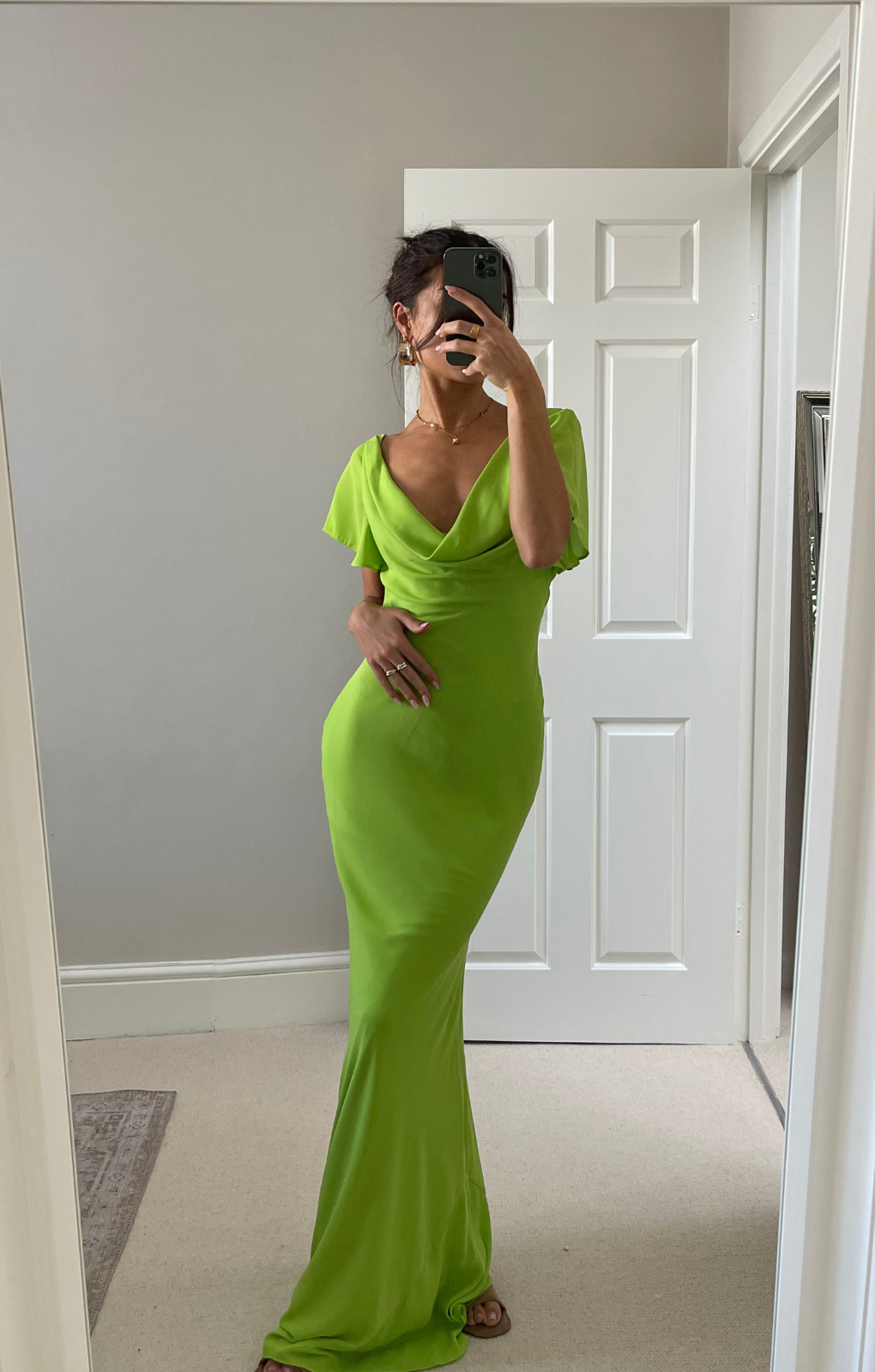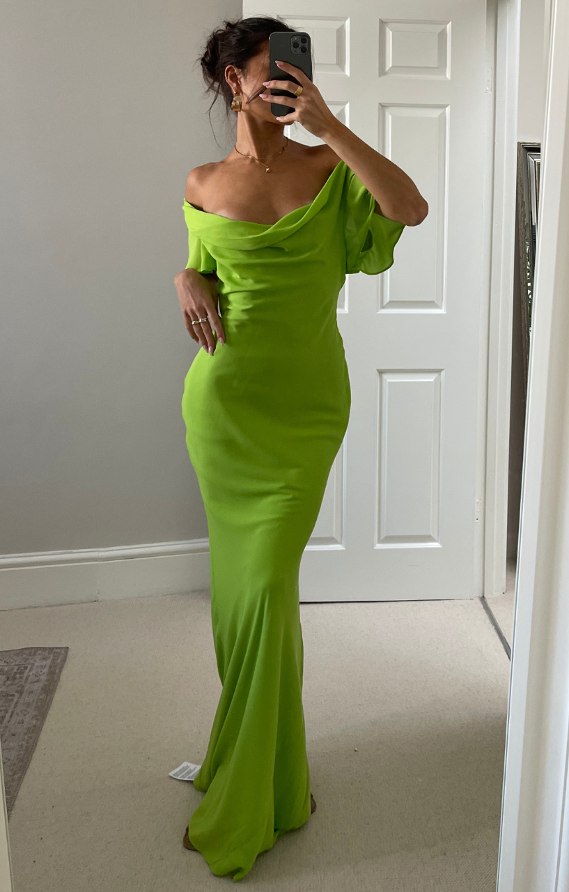 Asos Design Flutter Sleeve Cowl Neck Maxi Dress In Apple Green.