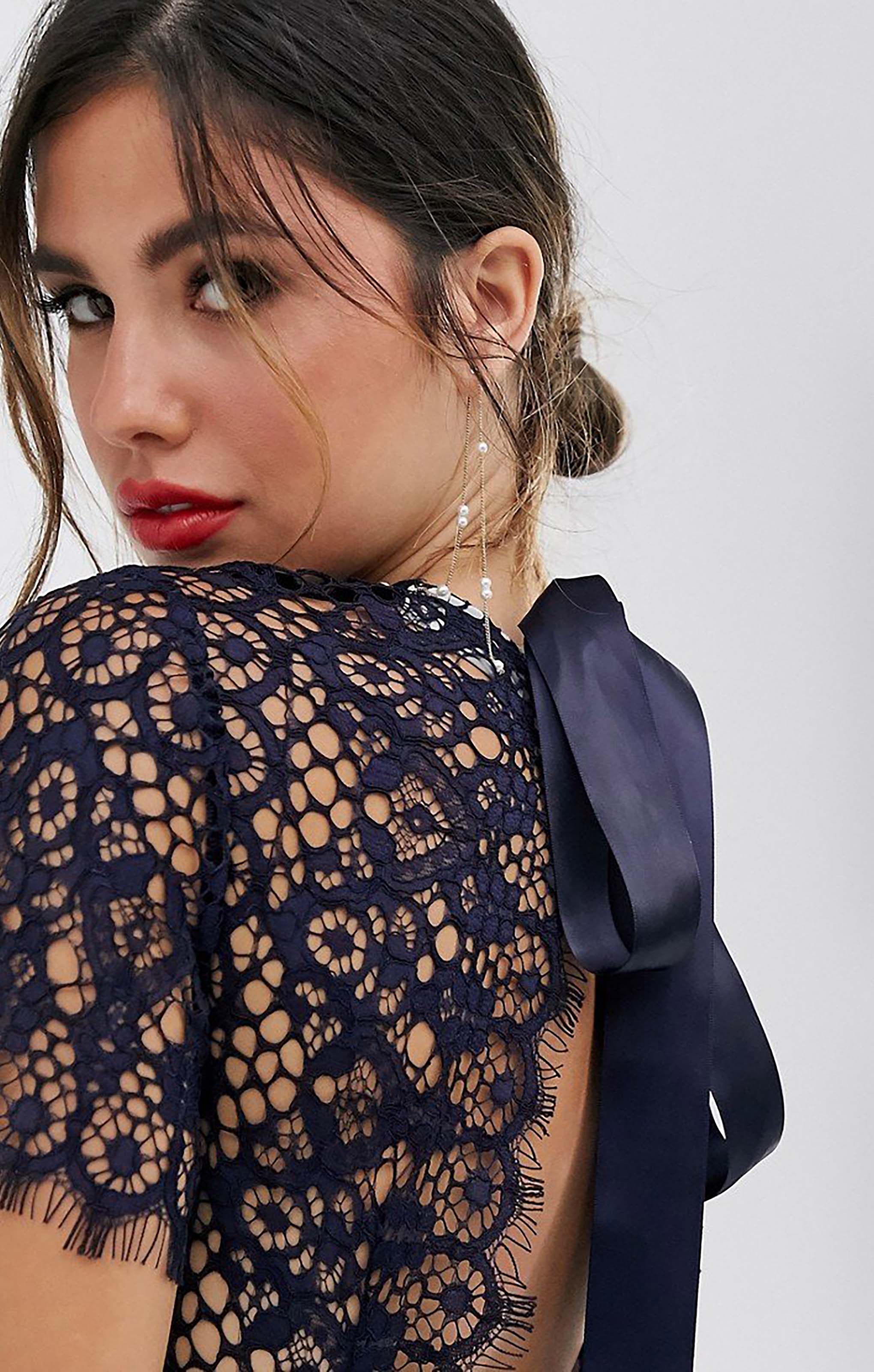 Channel timeless elegance with the ASOS DESIGN Lace Midi Dress with Ribbon. Crafted from delicate lace, this midi dress combines feminine detailing with a flattering silhouette. The ribbon tie accentuates the waist for a sculpted finish, while the midi length keeps it sophisticated and versatile. Perfect for weddings, parties, or any occasion where you want a refined yet fashion-forward look.