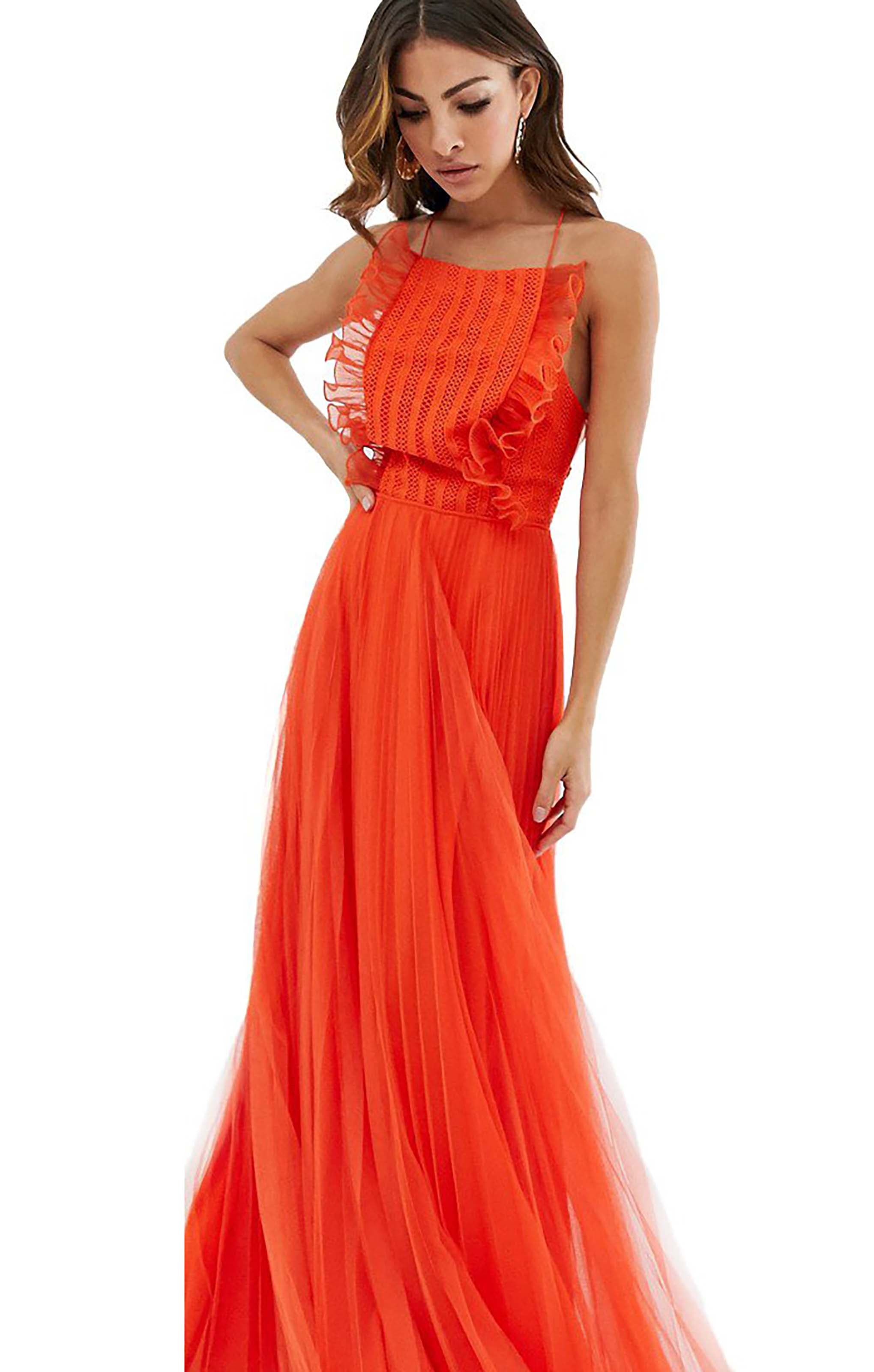 Turn heads in this romantic lace top from ASOS DESIGN. Featuring delicate lace fabric, soft ruffle detailing, and a statement strappy back, it’s perfect for dressing up your day-to-night look. Pair it with tailored trousers or a sleek midi skirt for effortless elegance.