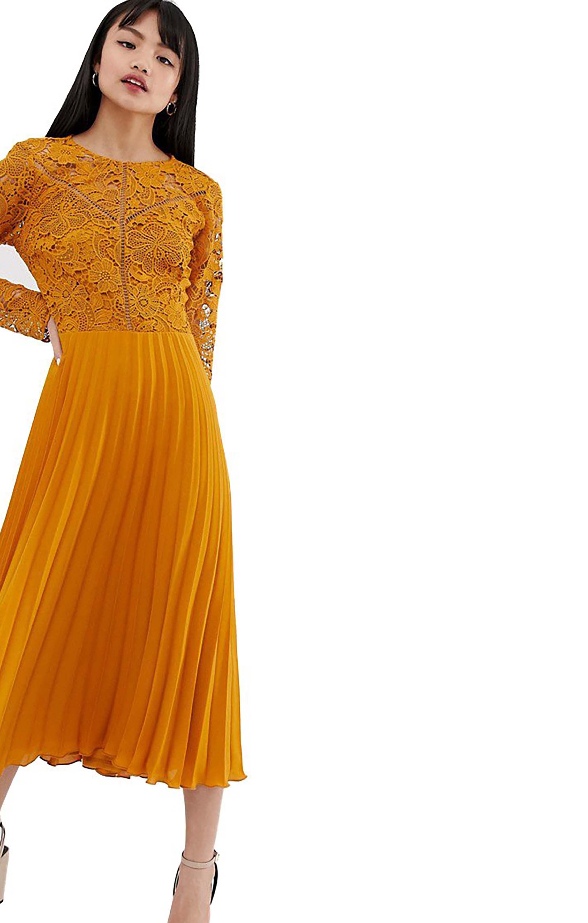 ASOS DESIGN Long Sleeve Lace Bodice Dress