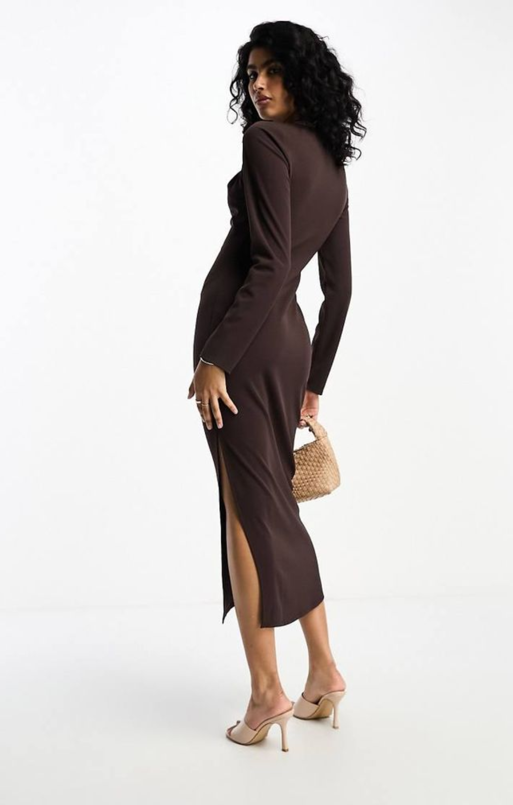 Elevate your wardrobe with this ASOS DESIGN Long Sleeve Midi Dress With Cup Detail In Chocolate for a fall wardrobe refresh, best dressed: secured. Features:
