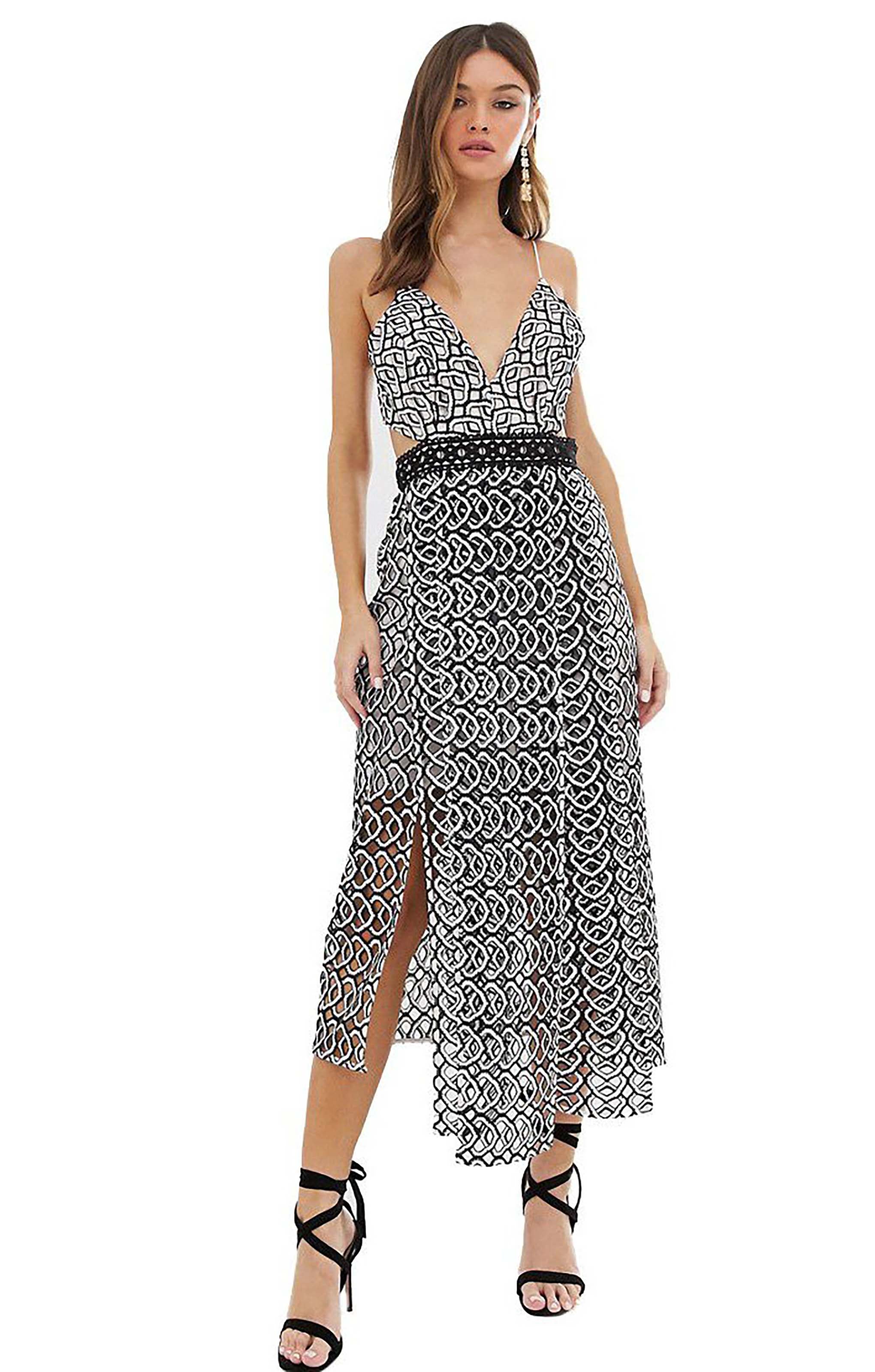 Stand out in this ASOS DESIGN Midi Dress in Mono Geo Print — a striking combination of modern pattern and effortless silhouette. Crafted in a flattering midi length, this dress features an all-over geometric print in classic monochrome tones for a versatile yet eye-catching finish. Perfect for work events, dinner dates, or casual occasions where you want to add a touch of contemporary flair.