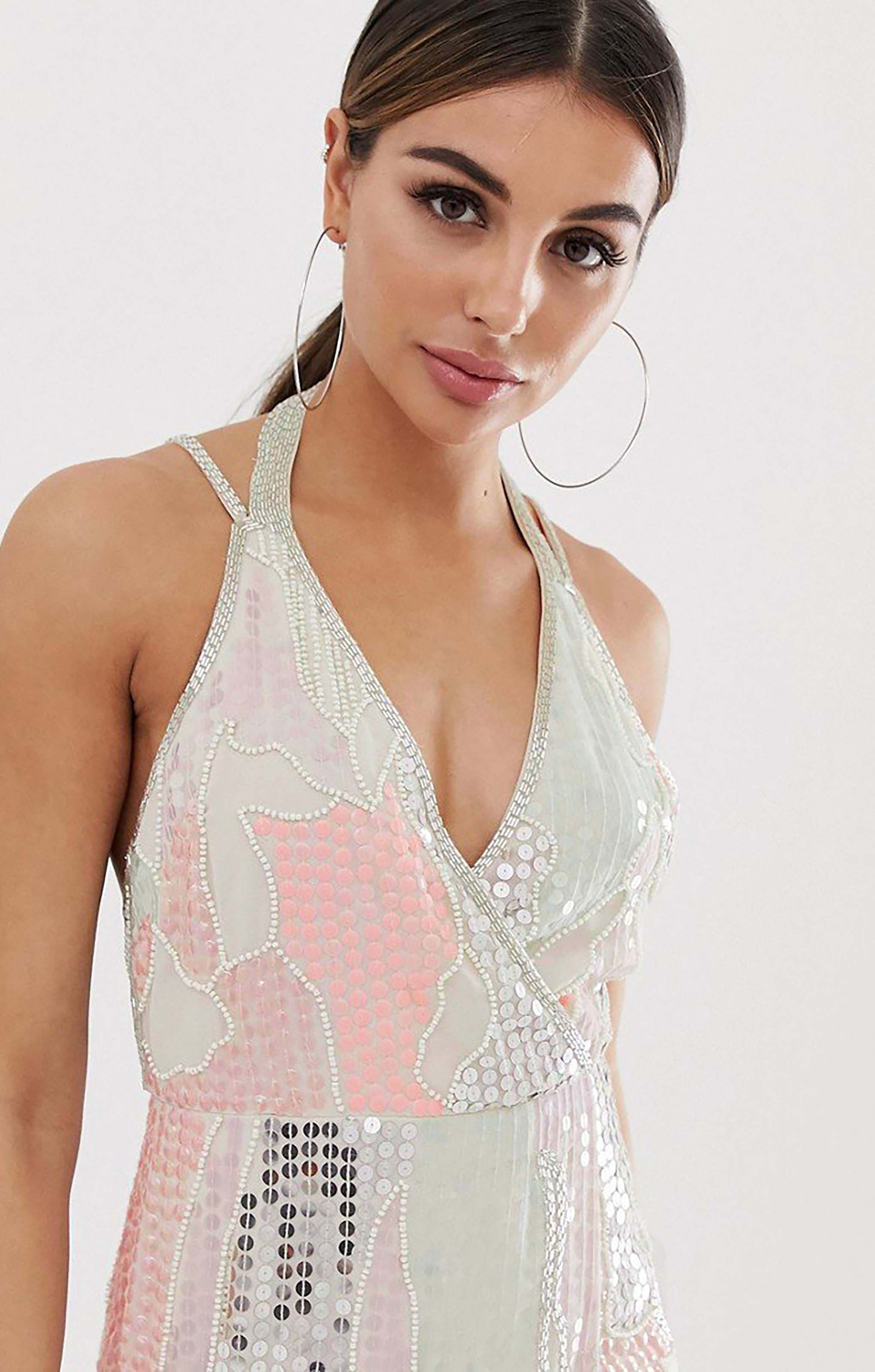 Shine bright in this ASOS DESIGN midi dress, adorned with delicate pearls and sparkling sequins. With a flattering silhouette and elegant midi length, it’s perfect for parties, evening events, or any occasion that calls for a touch of glamour.