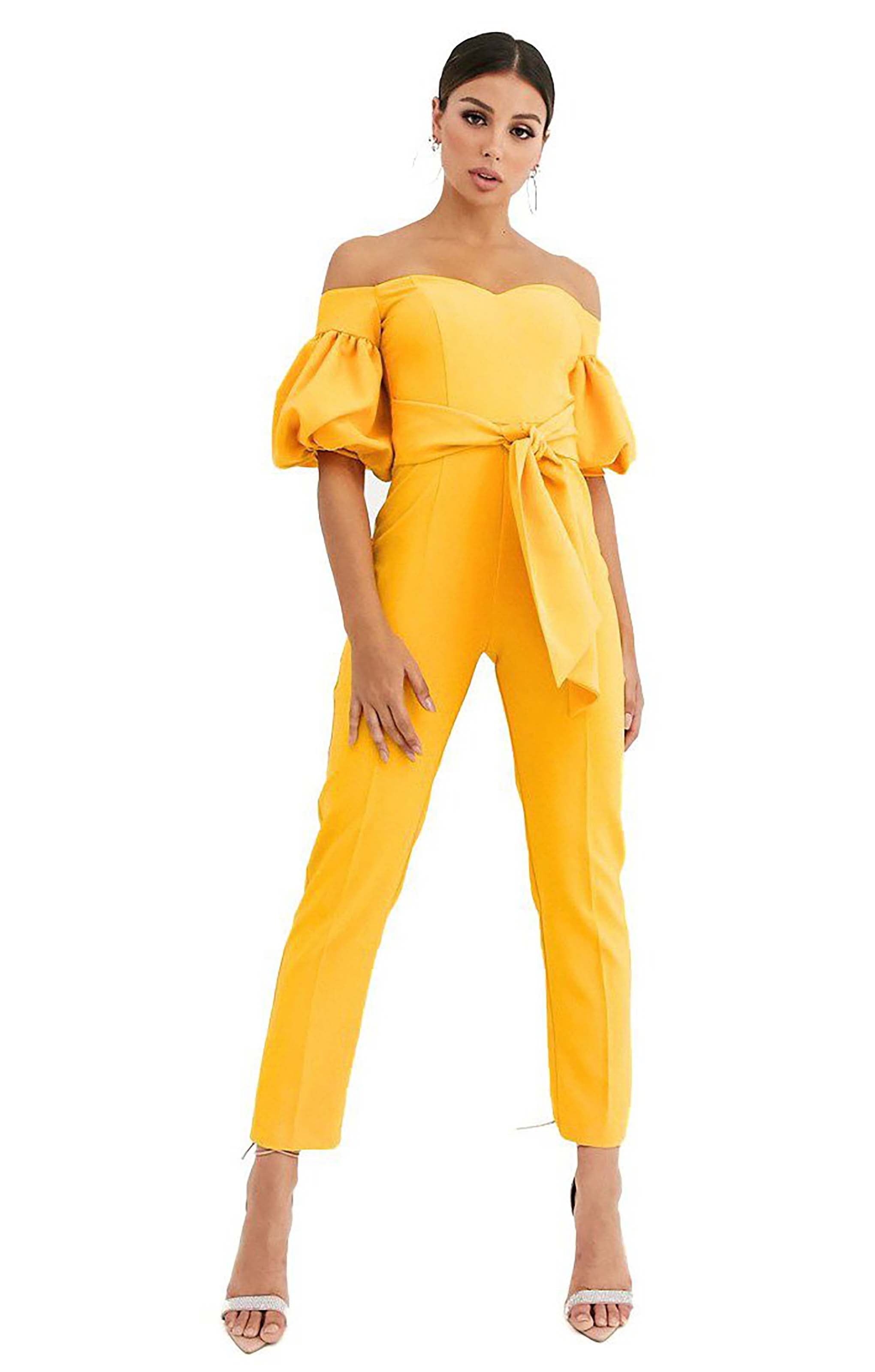 Step out in style with the ASOS DESIGN Off-Shoulder Puff Sleeve Jumpsuit — a chic and modern take on occasionwear. Featuring a flattering off-shoulder neckline and statement puff sleeves, this jumpsuit combines elegance with contemporary edge. Perfect for weddings, evening events, or nights out, it’s designed to make an impact while keeping you comfortable and confident.