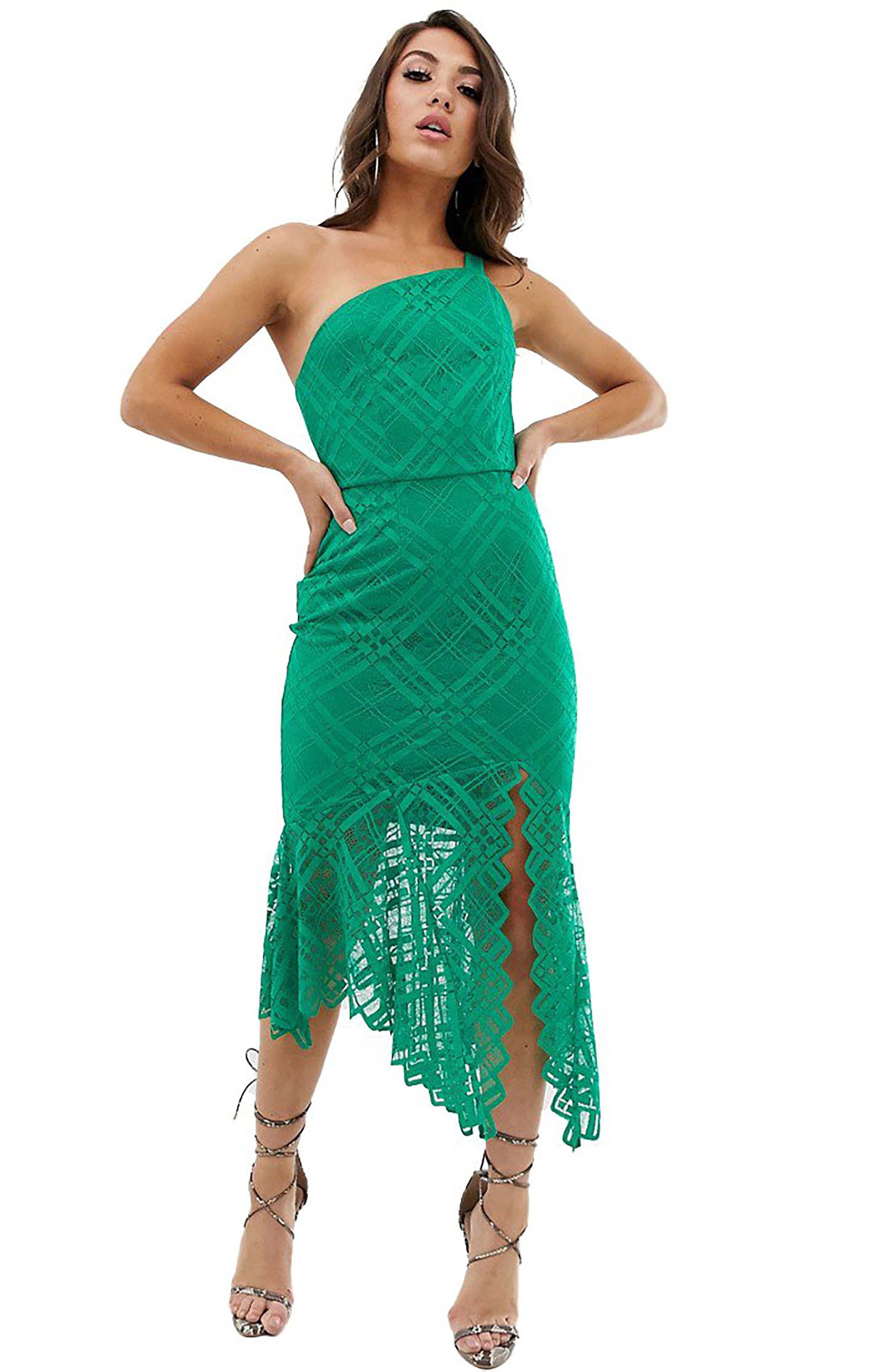 ASOS DESIGN One Shoulder Grid Lace Midi Dress