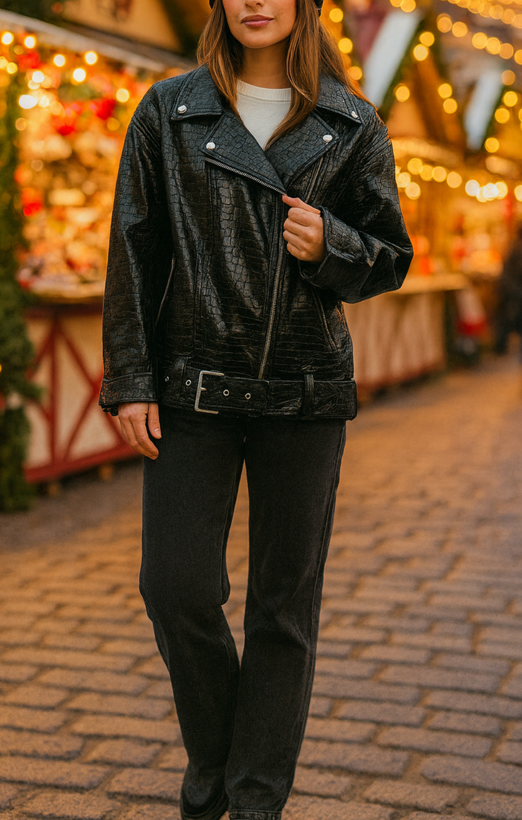 This jacket is a great fit, I love the slightly over-sized feel- the belt & buckle hem means you can also create more of a blouson shape