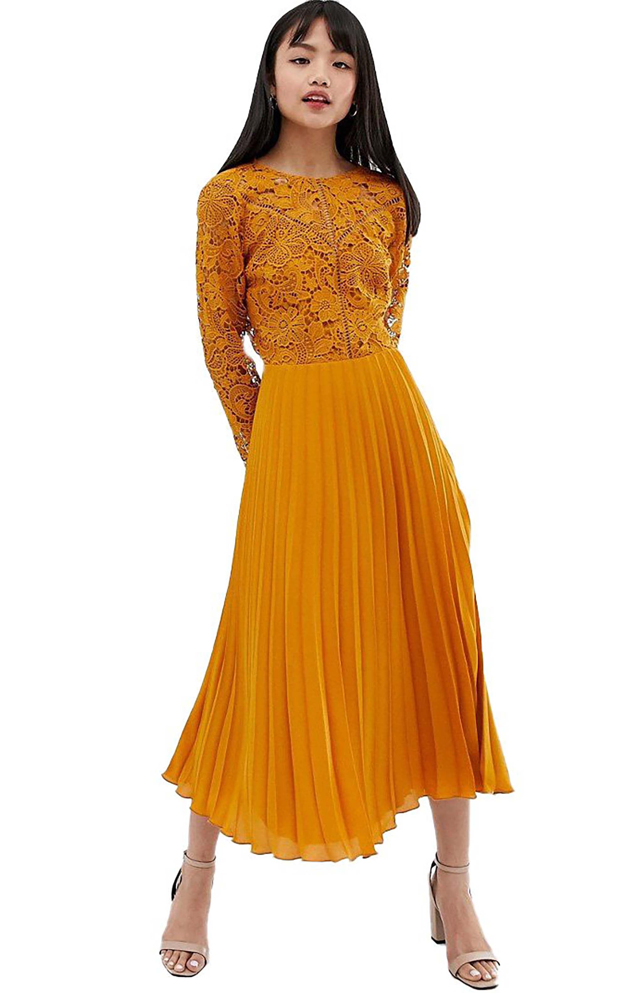 ASOS DESIGN Petite Long Sleeve Lace Bodice Dress