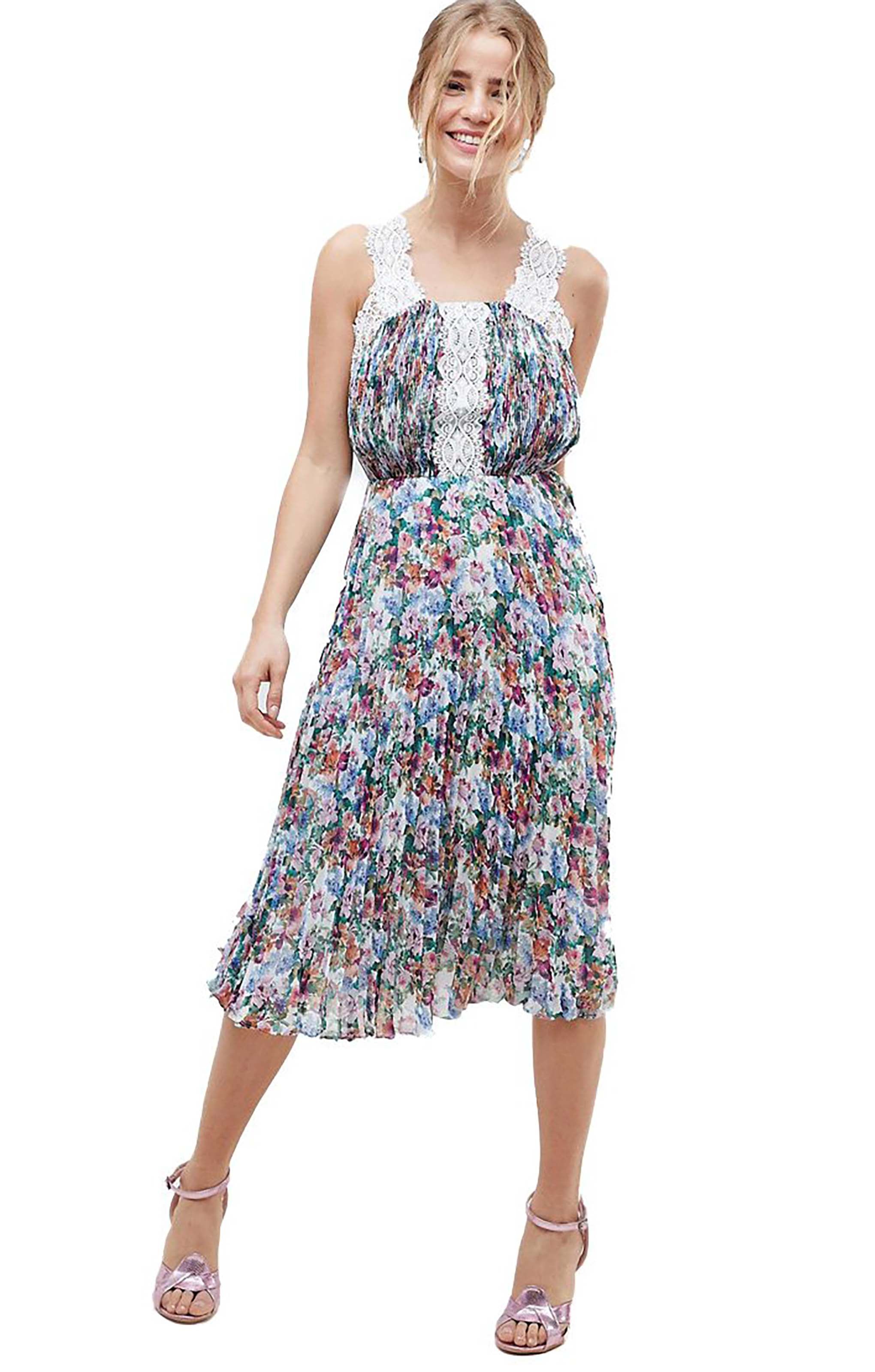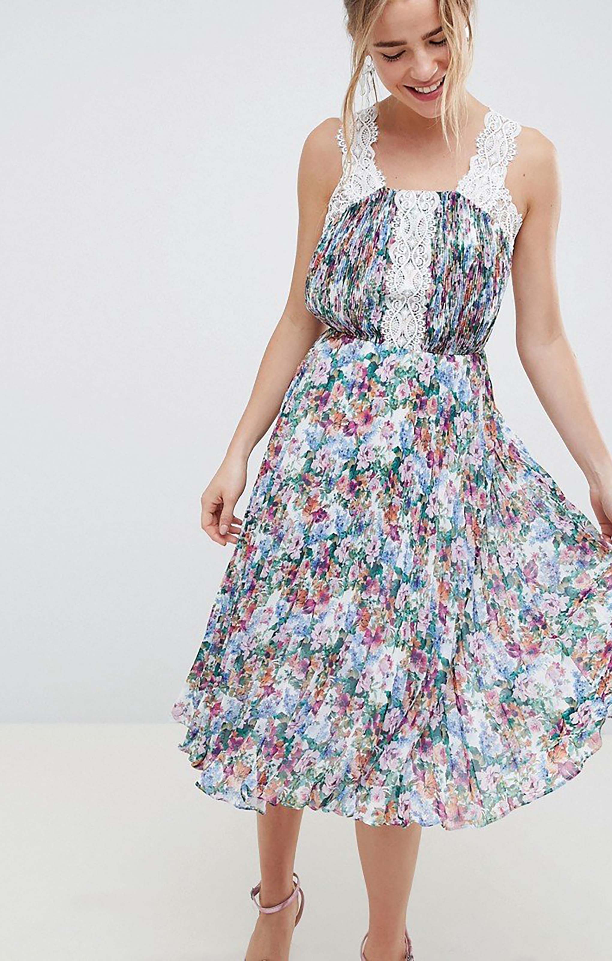 Bring the colour and the confidence with this vibrant pleated midi dress from ASOS DESIGN. Featuring a flattering fit-and-flare silhouette, soft pleats that move beautifully, and a bold bright hue made to stand out — it’s the perfect choice for weddings, parties, and every feel-good moment in between.