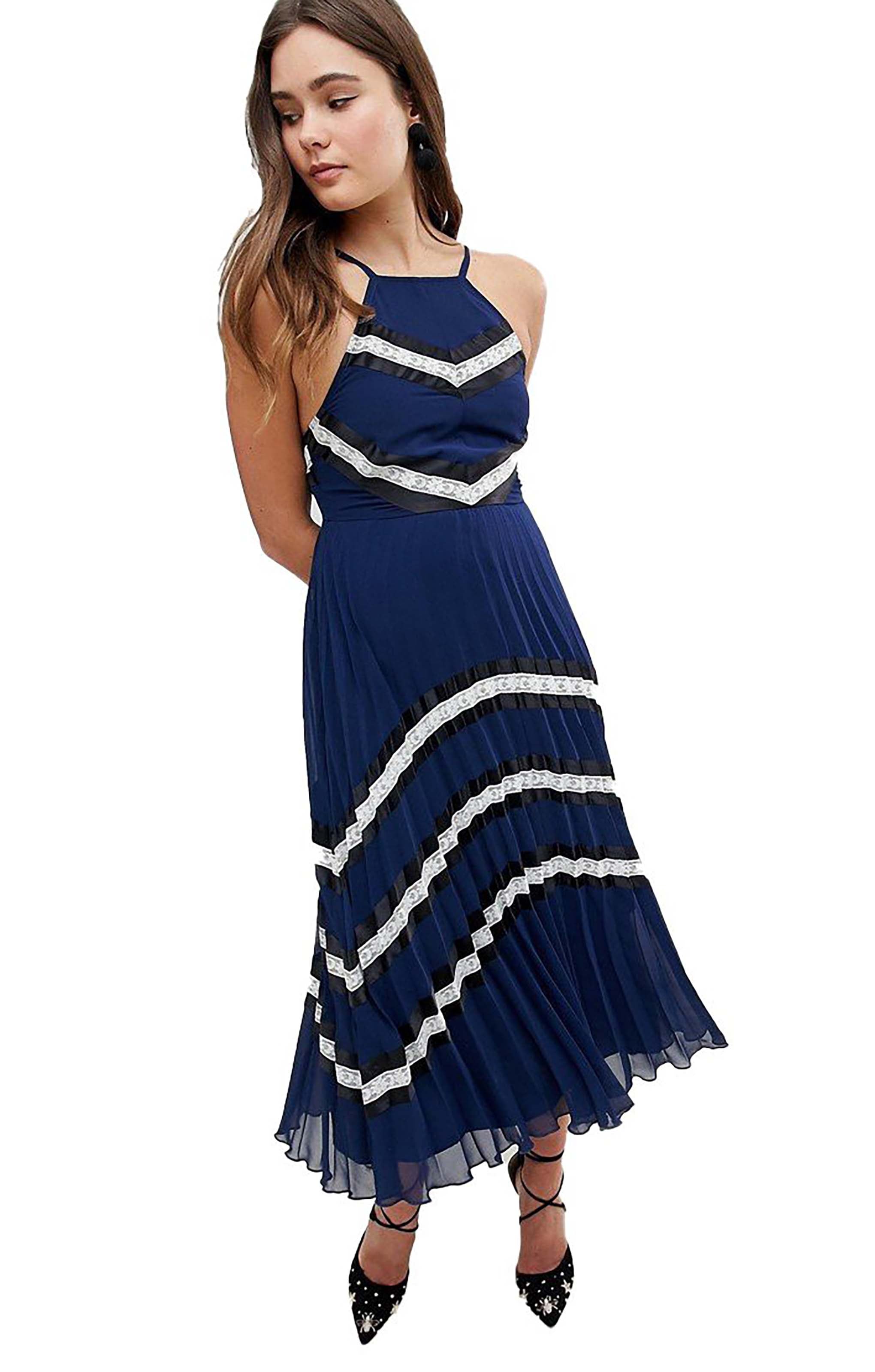 Twirl into any occasion with this pleated midi skater dress from ASOS DESIGN. Featuring a fitted waist, flowing pleated skirt, and a flattering silhouette that moves with you — it’s your go-to for everything from brunch plans to big events. Style it up or down, because this one does it all.