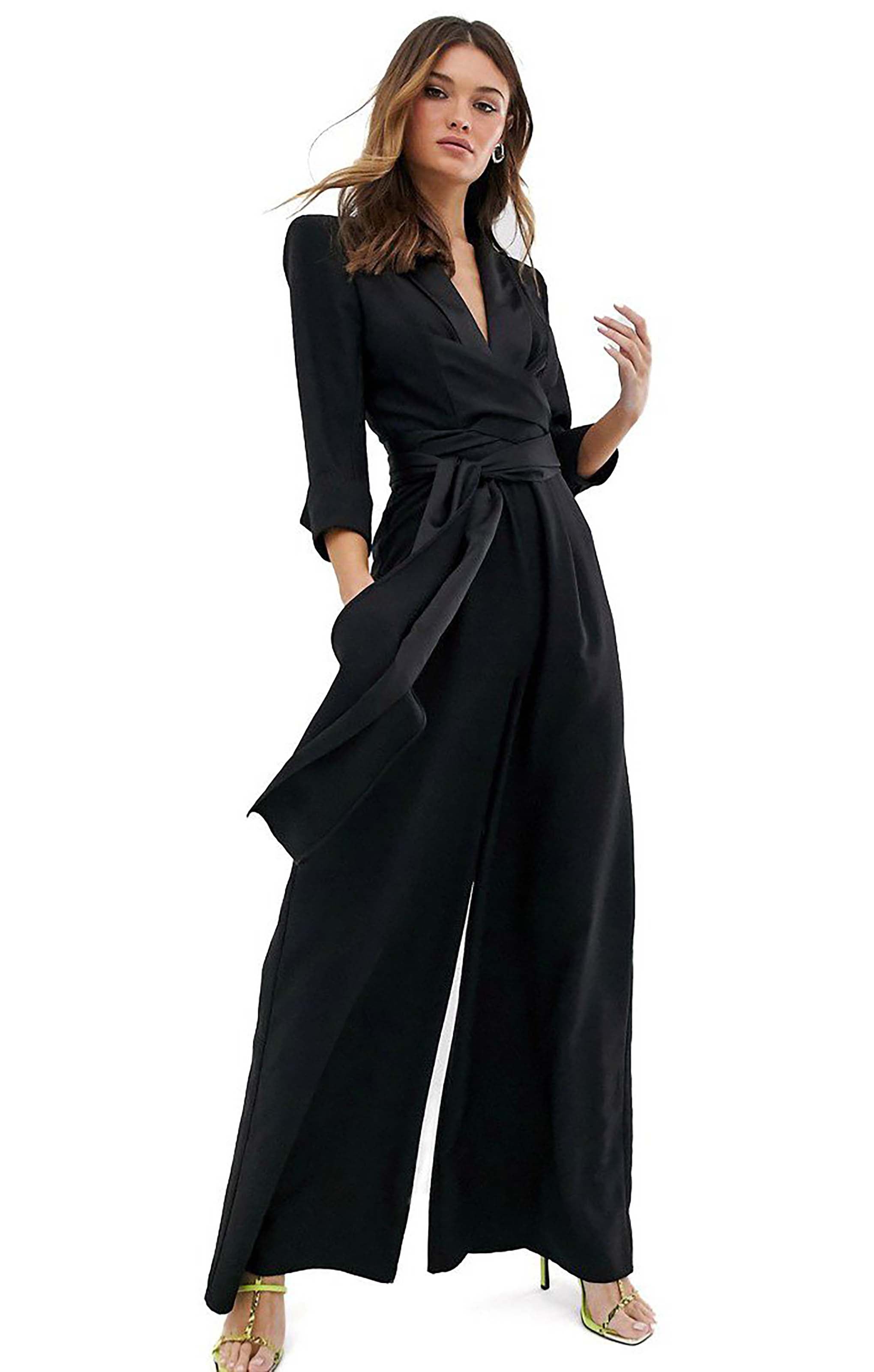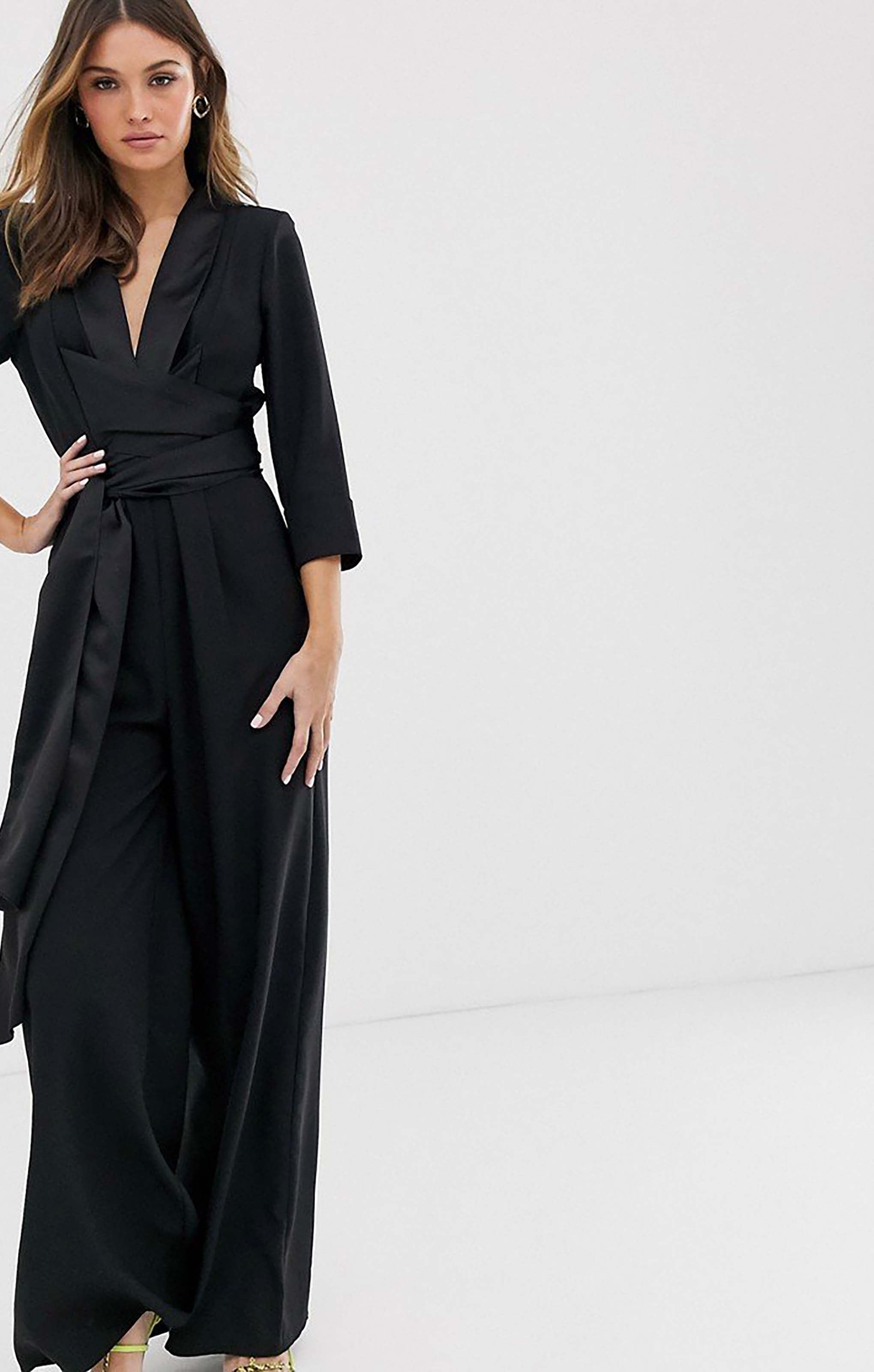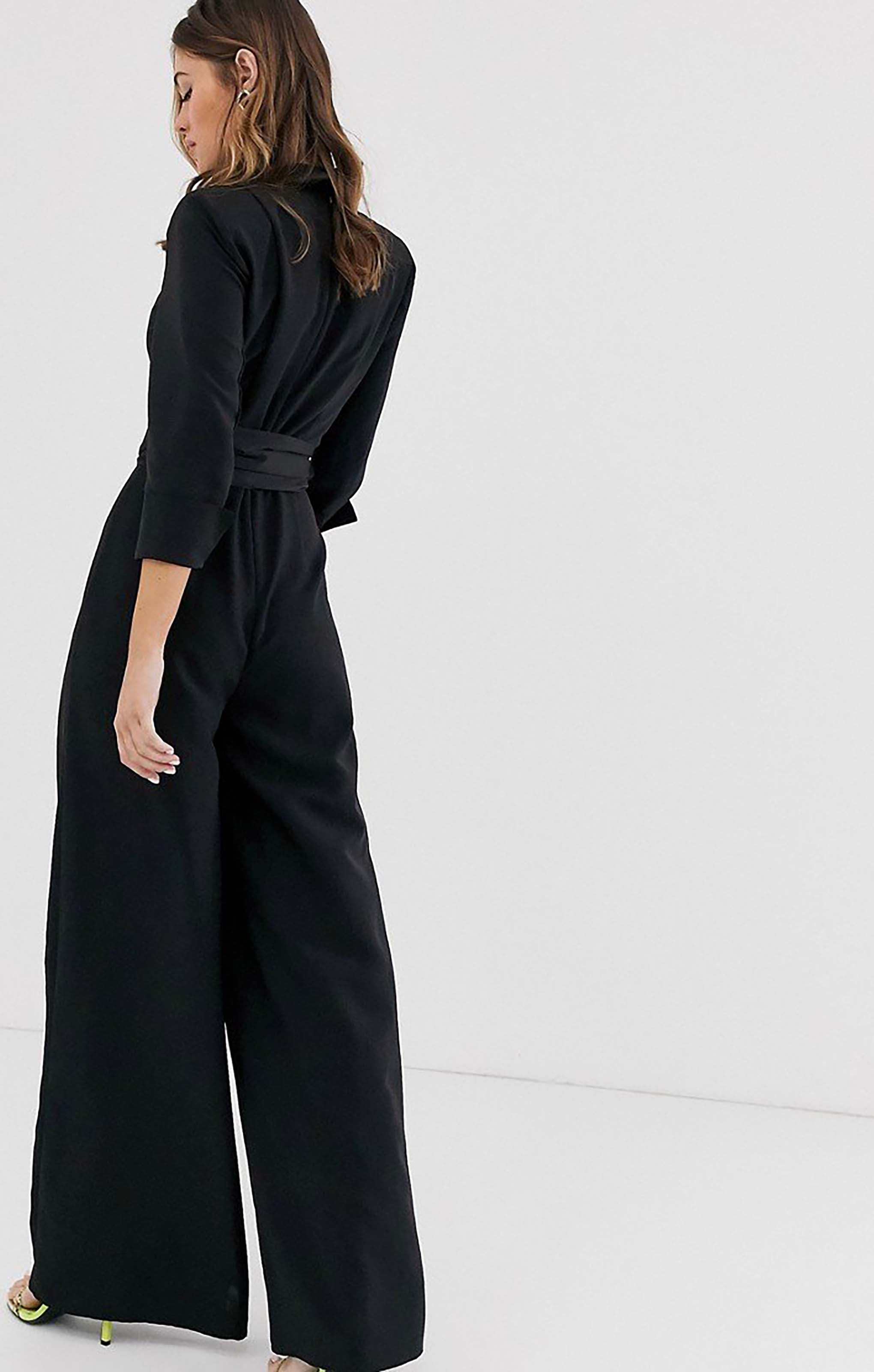 Make a bold statement in this ASOS DESIGN tux jumpsuit, featuring a daring plunge neckline and elegant wide-leg silhouette. Perfect for evening events, parties, or any occasion where you want a modern, sophisticated look with a touch of drama.