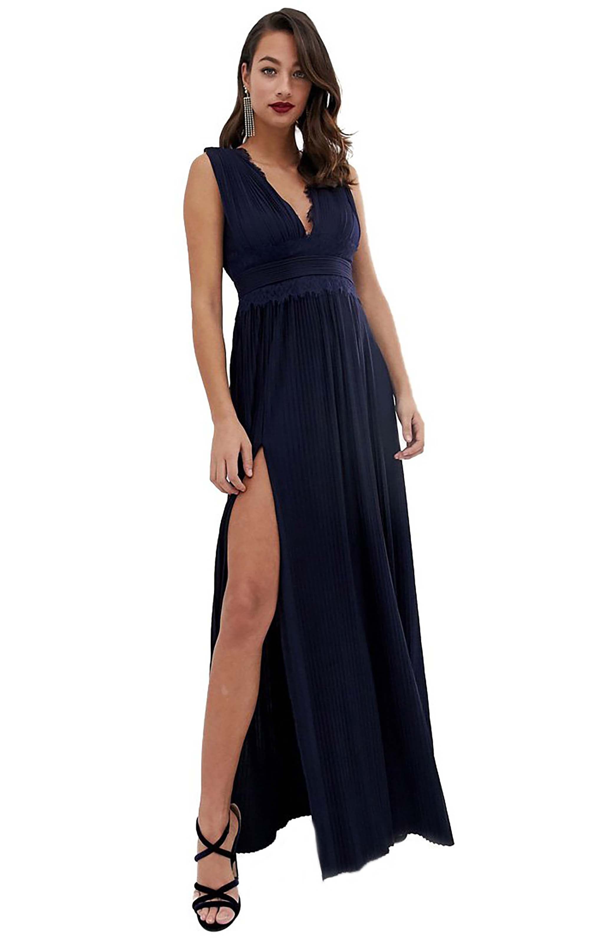 Delicate and sophisticated, this ASOS DESIGN Premium dress features elegant lace inserts and a flowing pleated skirt. Designed to flatter and move beautifully, it’s perfect for weddings, evening events, or any special occasion that calls for timeless elegance.