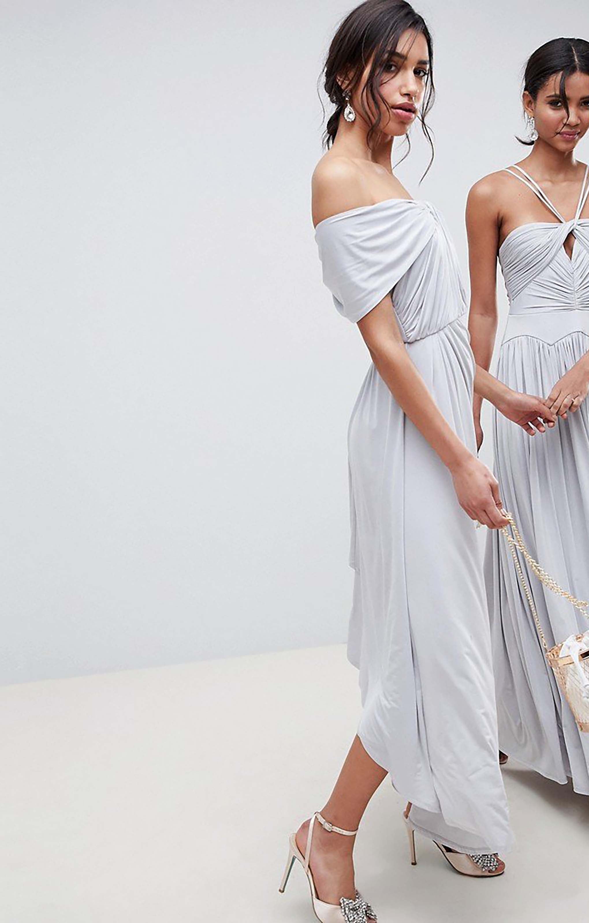 Turn heads in this statement ruched maxi dress from ASOS DESIGN. Featuring a flattering knot-front detail that cinches the waist, soft stretch fabric, and a flowing maxi silhouette, it’s perfect for evening events or special occasions. Style it with heels and statement earrings for an effortlessly elegant look.