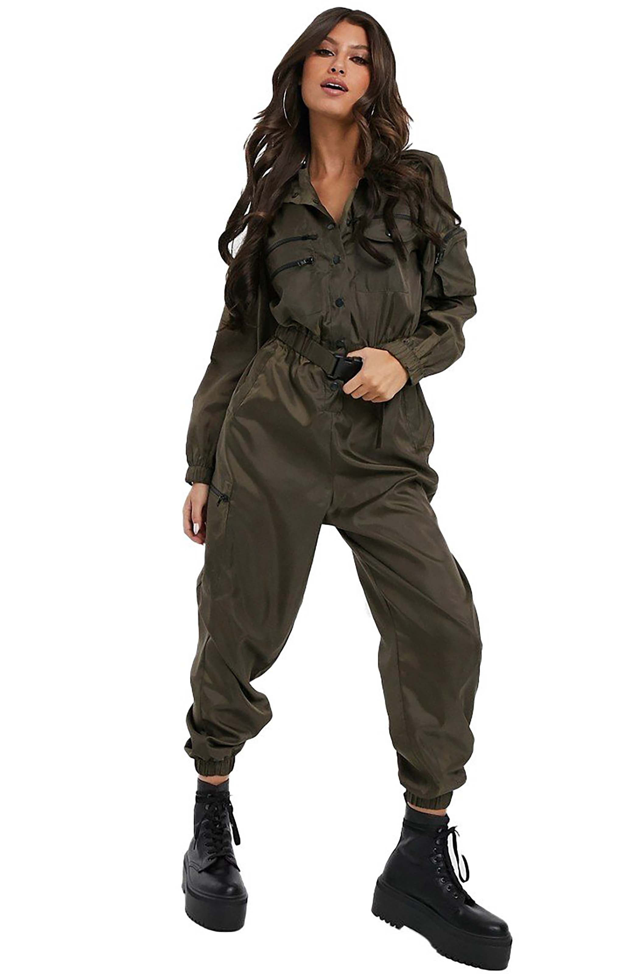 Sporty meets stylish in this ASOS DESIGN shellsuit jumpsuit, featuring bold contrast panels and a relaxed, comfortable fit. Perfect for casual days, street style looks, or anytime you want an effortlessly cool, modern outfit.