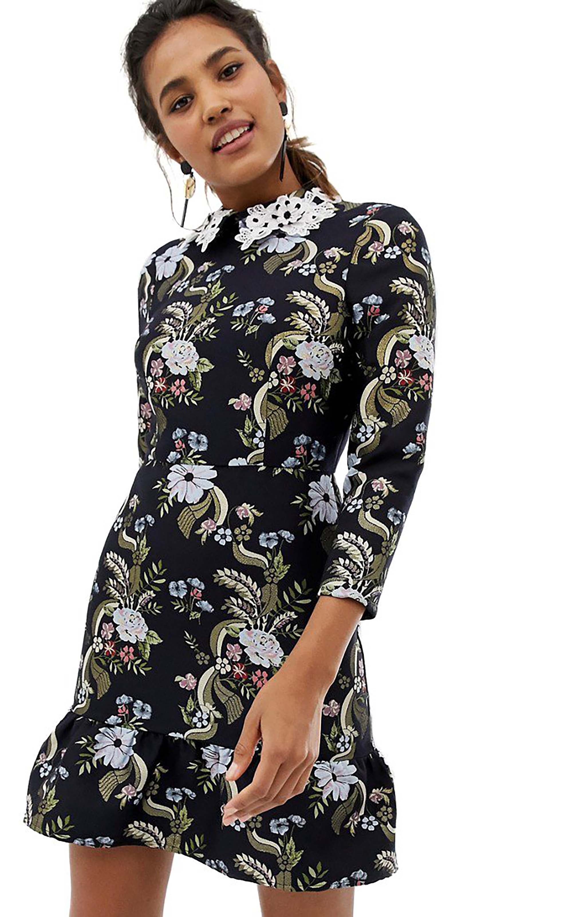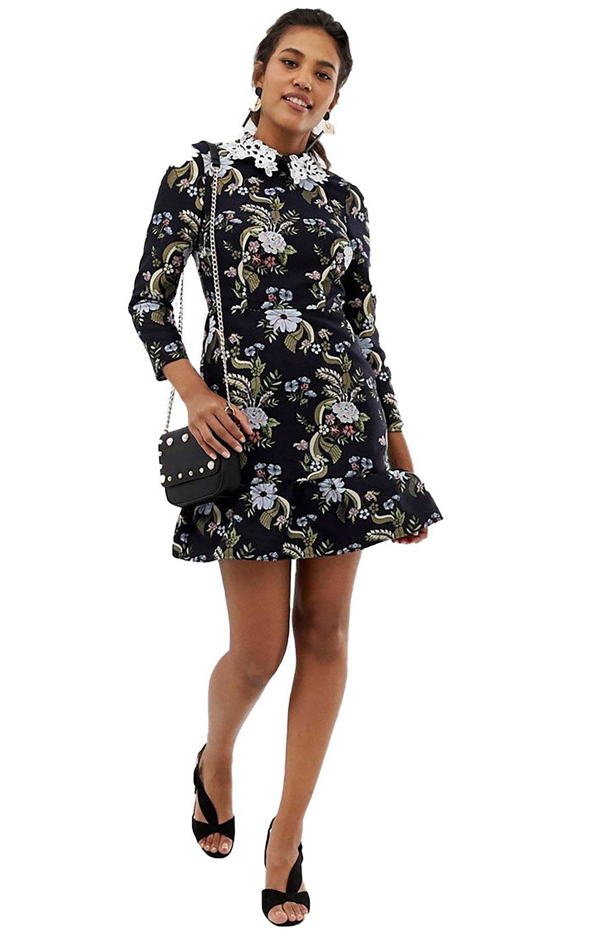 ASOS DESIGN Square Neck Midi Dress with Lace Collar