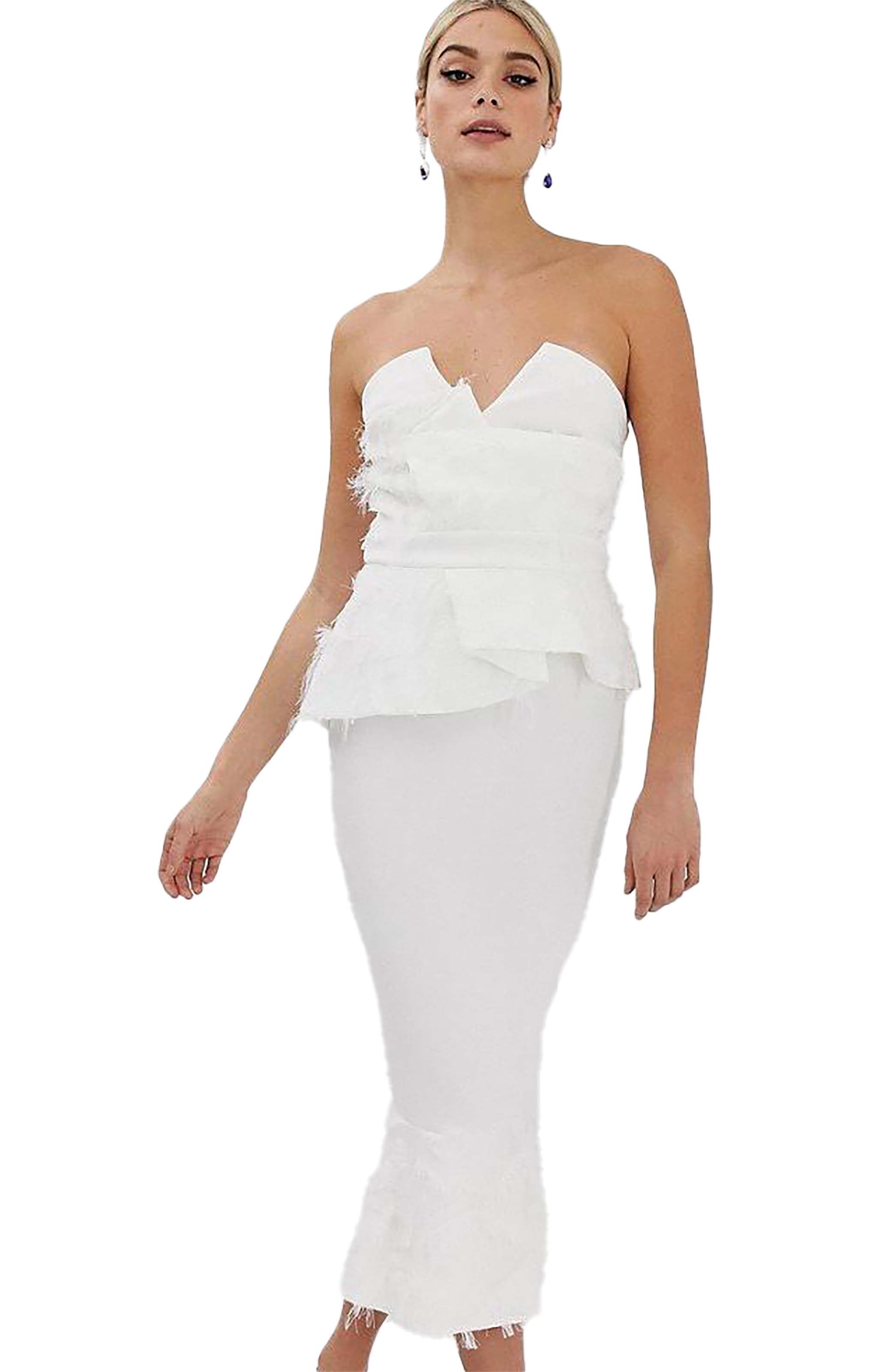 ASOS DESIGN Tall Premium Faux Feather Detail Peplum Dress