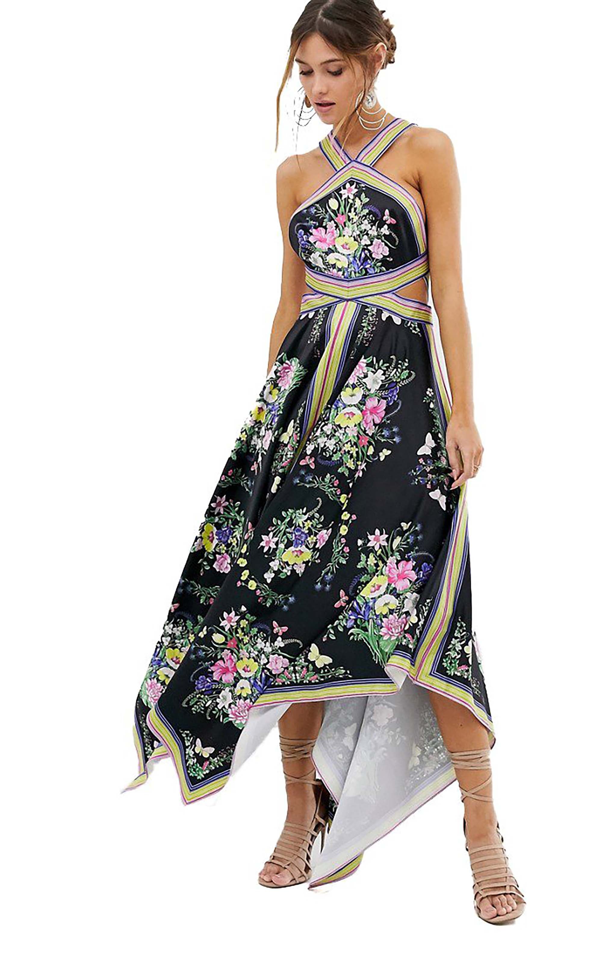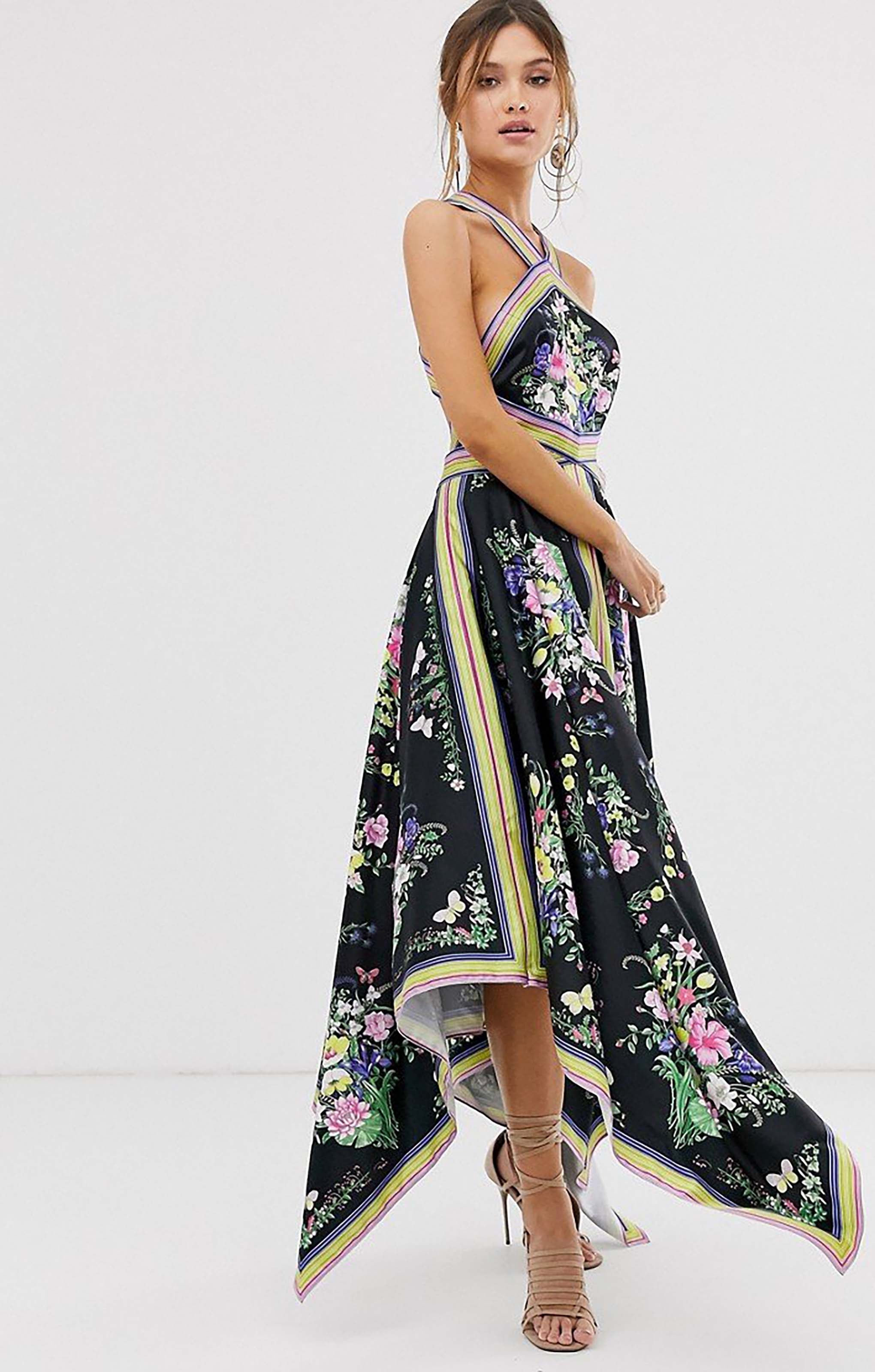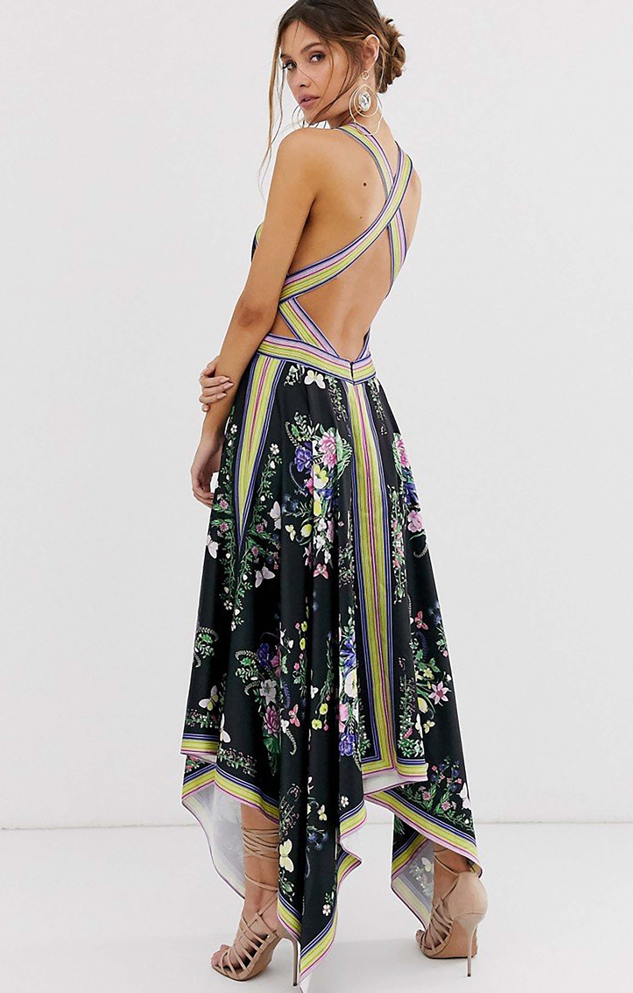 Elevate your wardrobe with this ASOS EDITION halter midi dress, featuring a sophisticated dark scarf print and a flattering silhouette. Perfect for weddings, parties, or stylish evening events, it combines elegance with contemporary design.