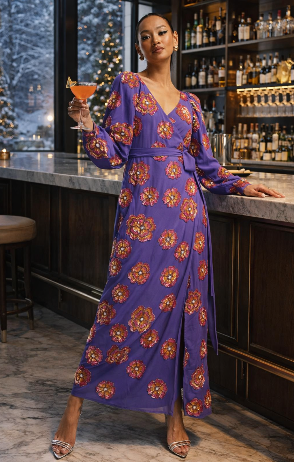 Introducing the ASOS Edition Sequin Wrap Midi Dress in Floral Sequin, adorned in a stunning purple hue—a captivating ensemble meticulously crafted to exude elegance and charm. Elevate your wardrobe with this enchanting midi dress, designed to make a memorable entrance at any occasion.