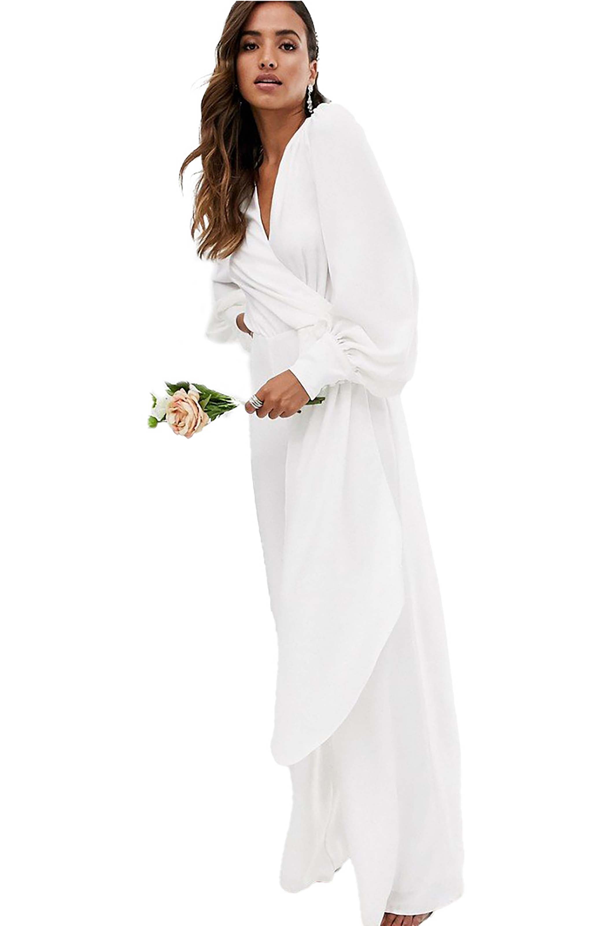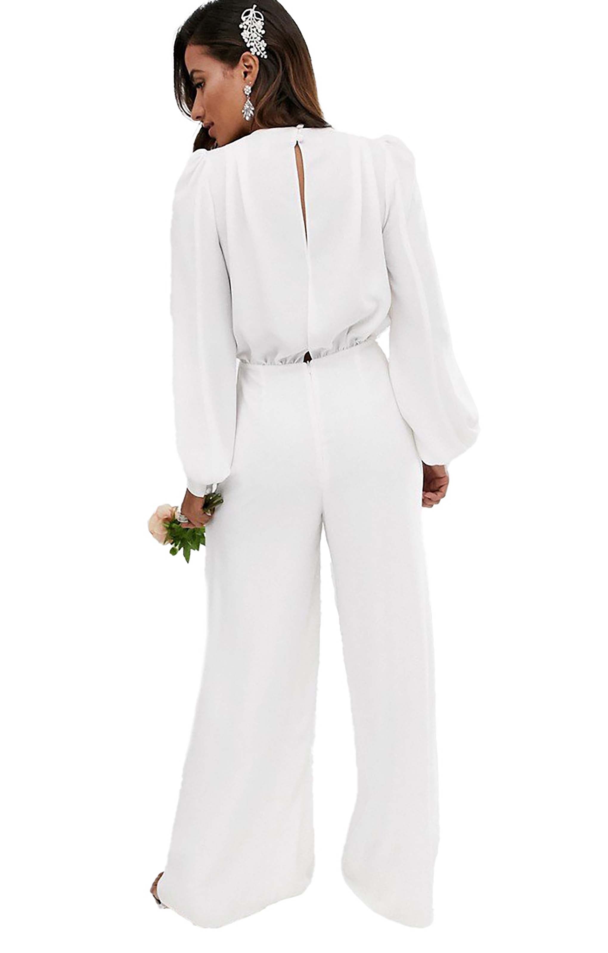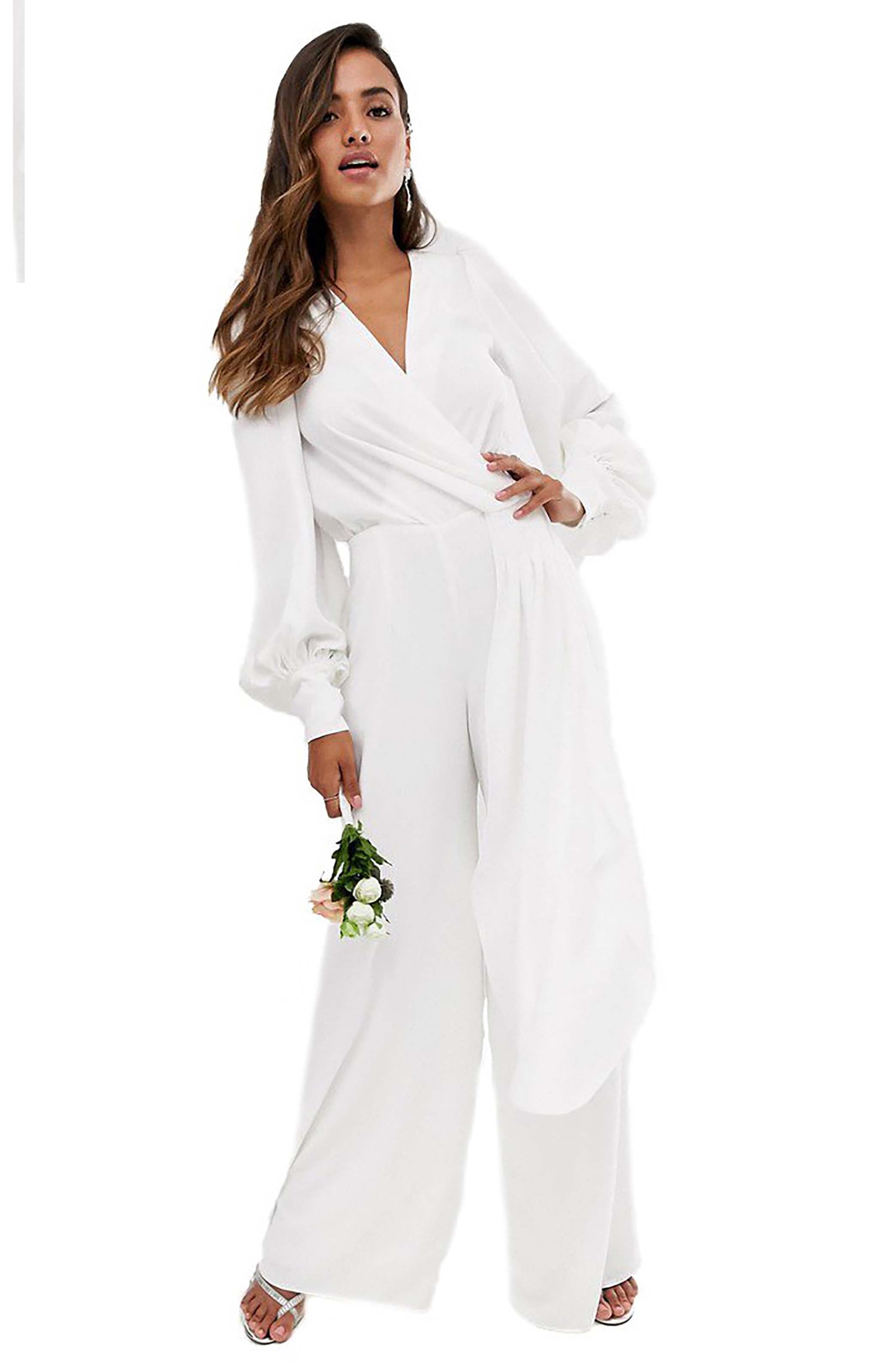 Modern bridal elegance redefined. This sophisticated jumpsuit features a wrap front, draped side detailing, and a tailored fit that flatters every angle. Perfect for contemporary brides or chic civil ceremonies.