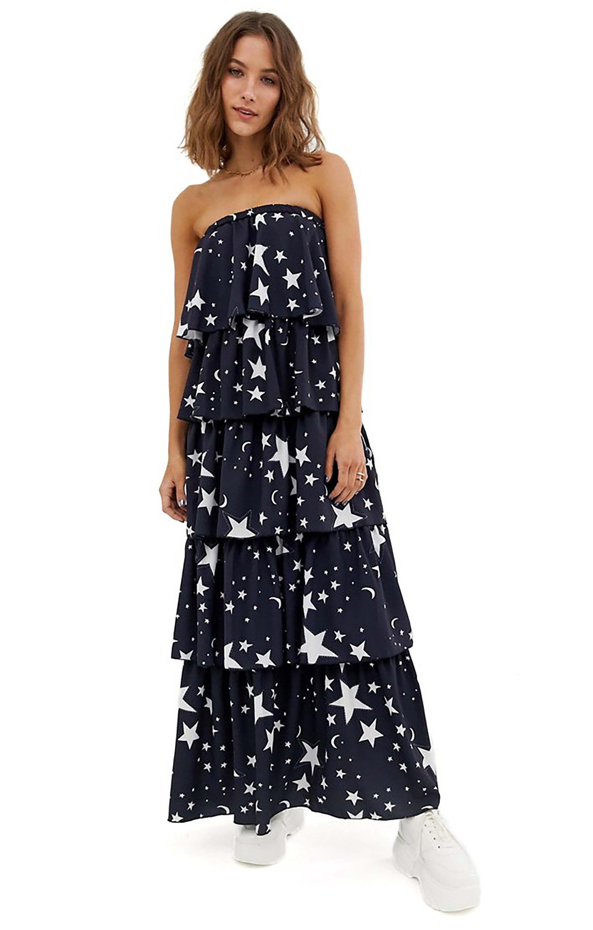 Bring effortless style with this multi-tiered midi dress from ASOS MADE IN KENYA. Featuring layered tiers for a playful, flowing silhouette, it combines comfort and elegance — perfect for daytime events, casual occasions, or weekend outings.