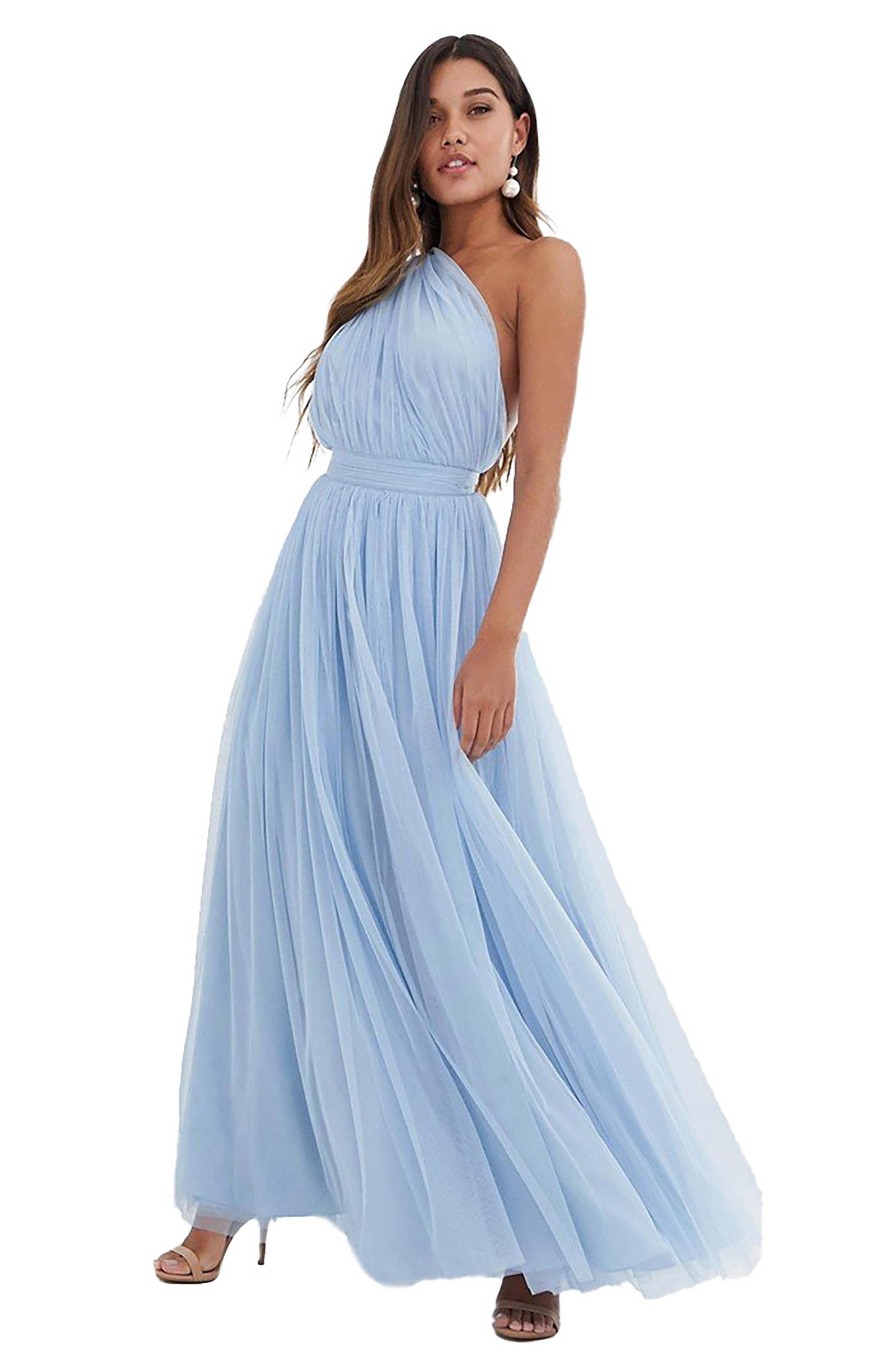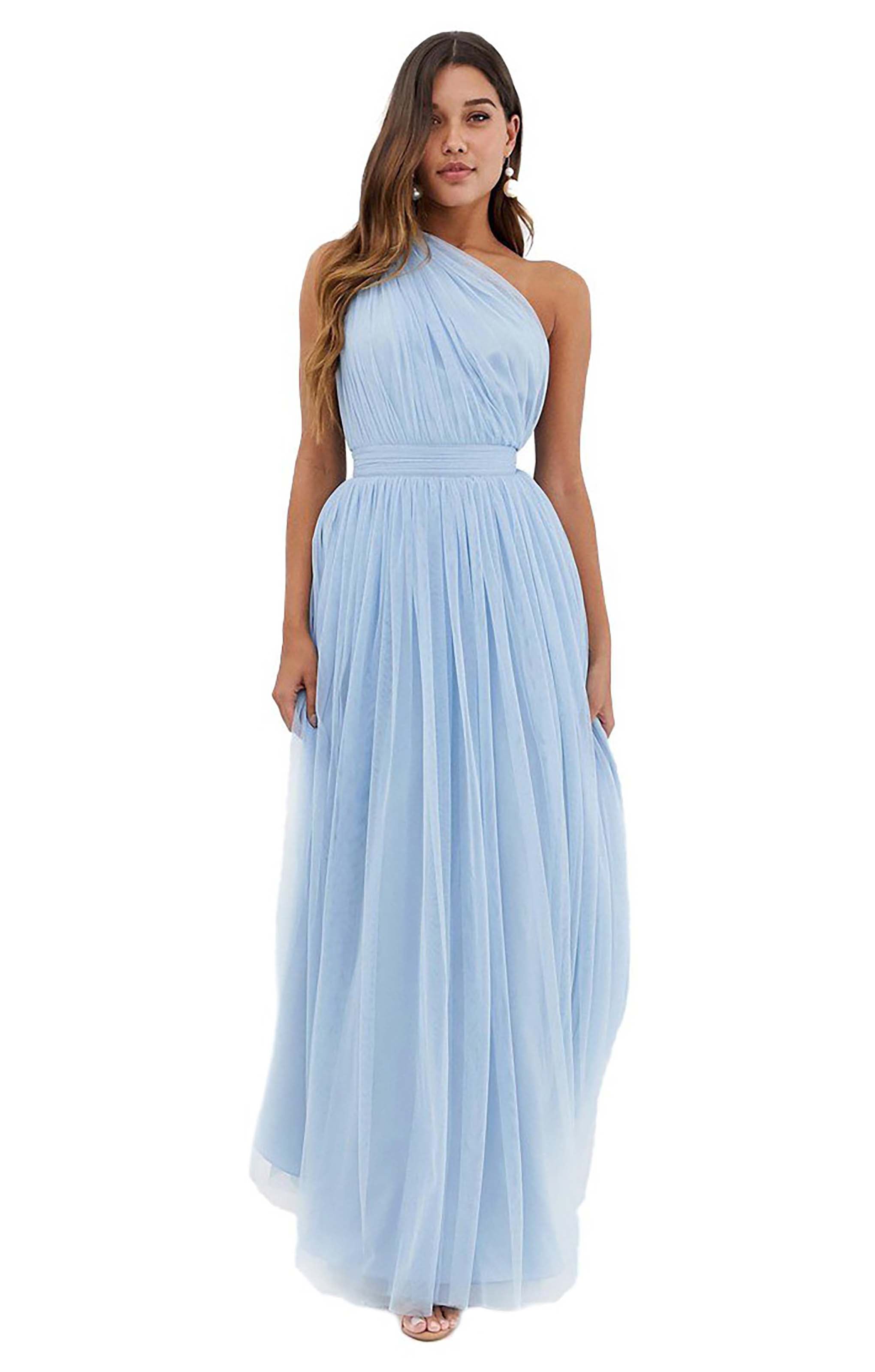 Step into effortless elegance with this ASOS maxi dress, featuring a chic one-shoulder design and floaty tulle layers. With a flattering silhouette and graceful movement, it’s perfect for weddings, parties, or any occasion where you want to make a statement.