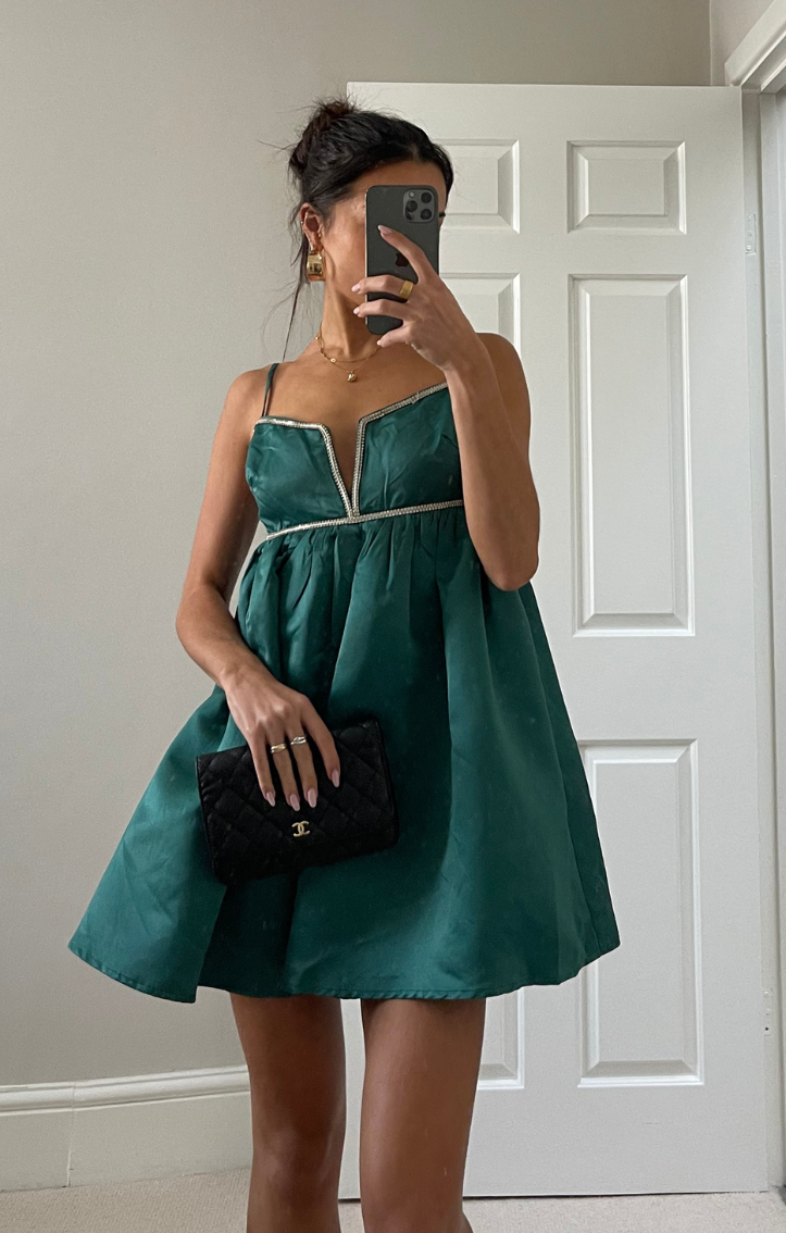 Band Of Stars Premium Diamante Trim Satin Cami Dress In Green Featuring: