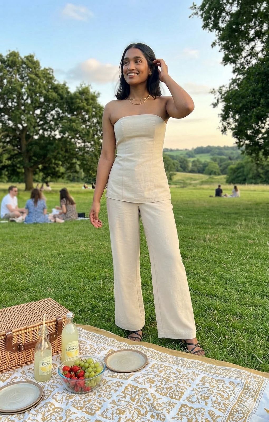 Just effortless. These polished wide leg trousers are perfect for your next event in cream. Layla sits high on the waist before falling into a floaty cut. We’re wearing ours with the matching corset-inspired bandeau.