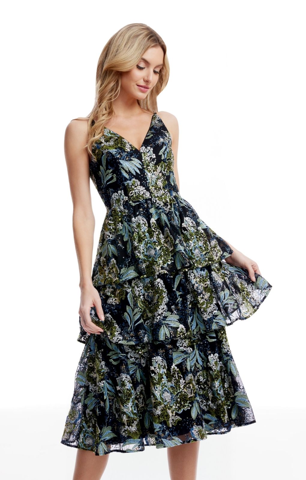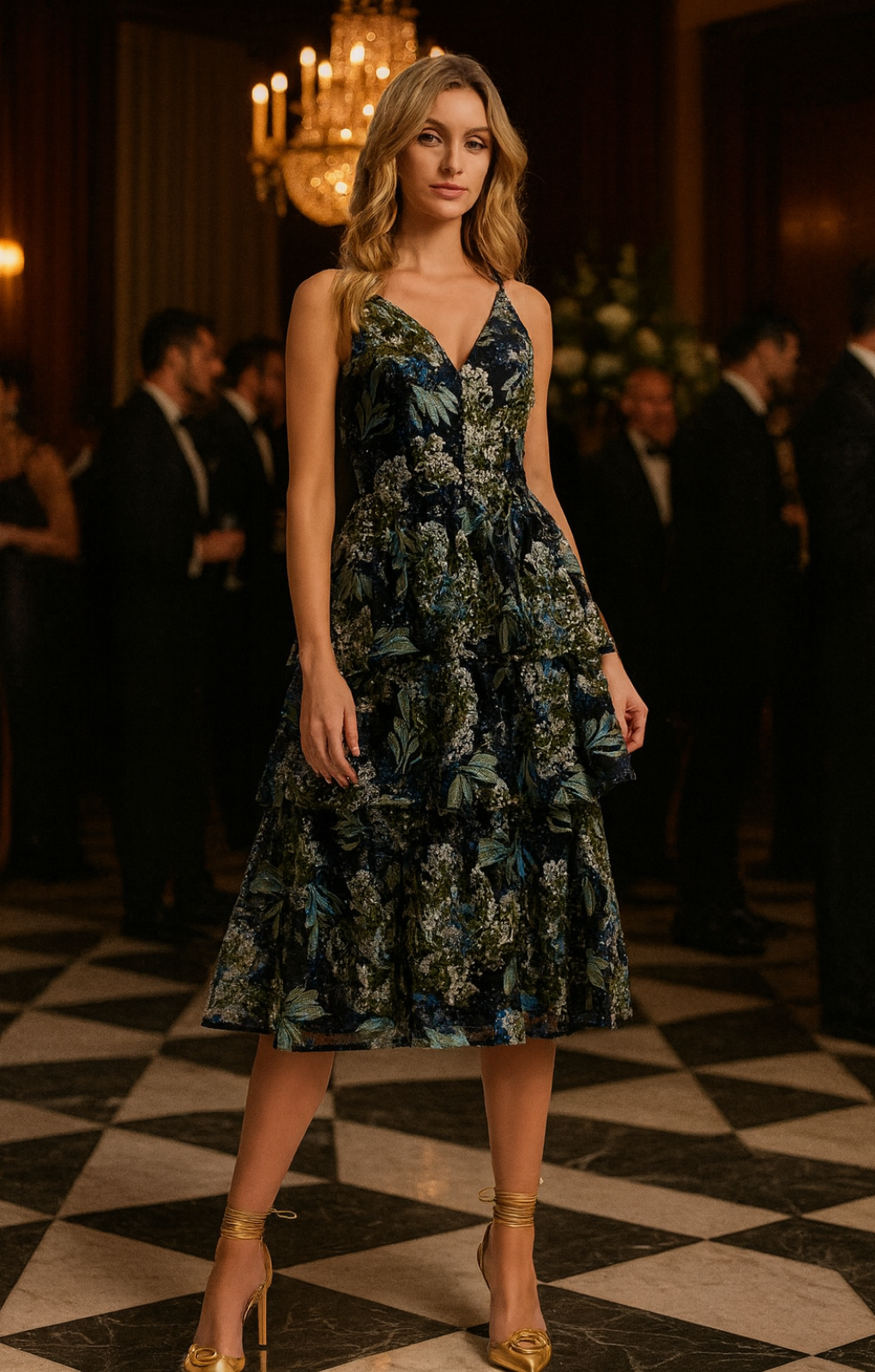 The Lorelai Dress boasts a sophisticated sleeveless v-neck design, complemented by a playful tiered fit and flare silhouette. With its figure-flattering midi length, this dress is perfect for any occasion. Elevate your style with this must-have piece.