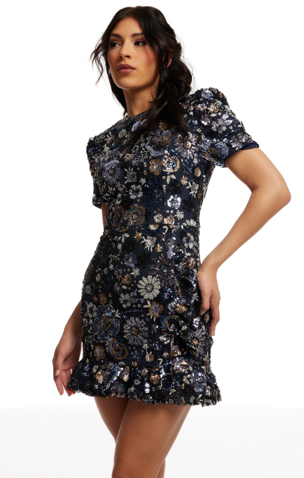 The Brittany Dress is the perfect addition to your closet. It's crafted with a high neck and short sleeve silhouette with a figure-hugging wrap-style skirt. The delicate ruffles add an elegant finish. This timeless piece offers a comfortable yet sophisticated look.