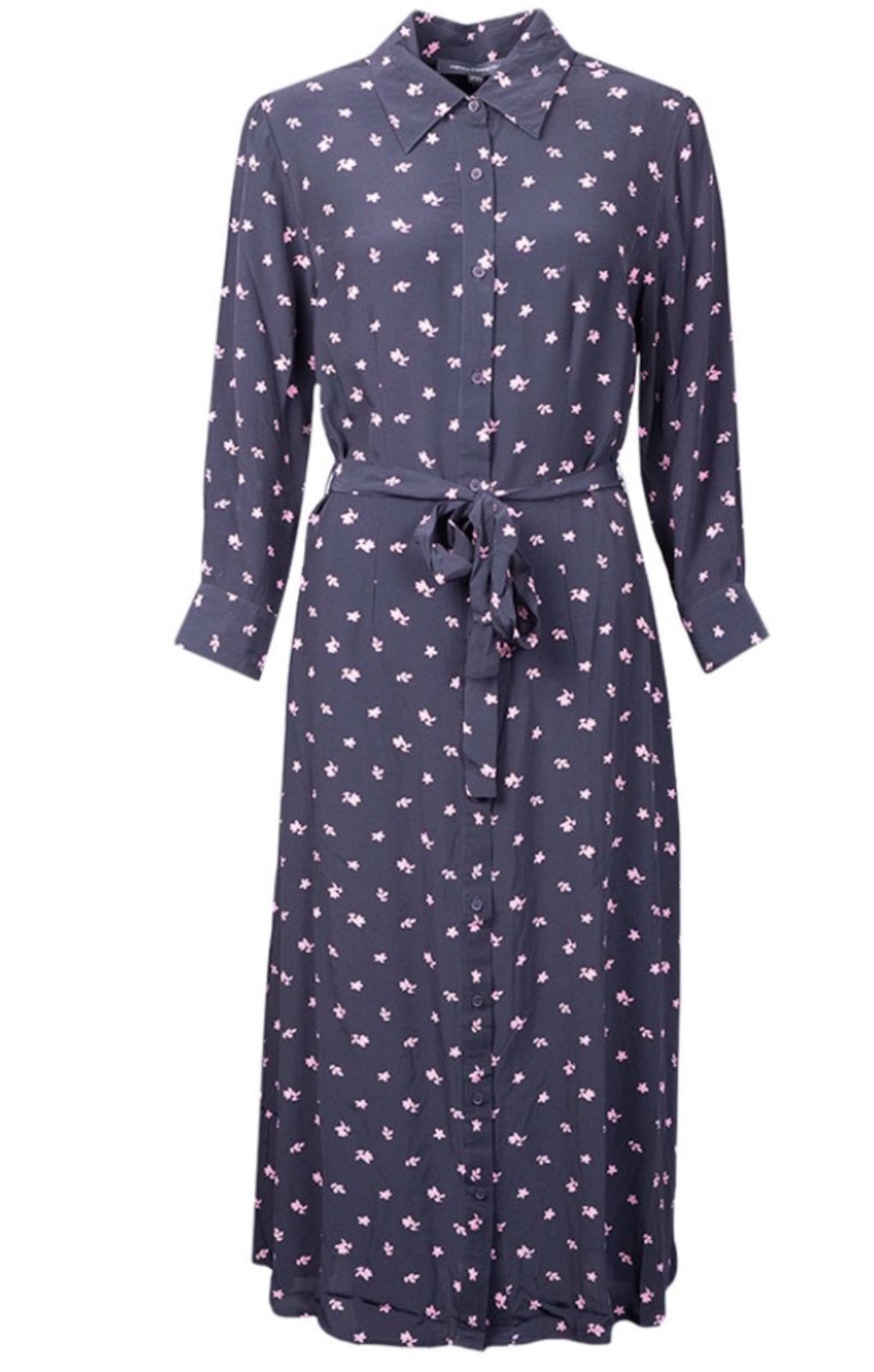 French Connection Augustine Delphine Navy Shirt Dress Welcome in any season with the Augustine Navy Delphine Shirt Dress. This midi style is perfectly unpretentious, yet its comfortable fabrication and timeless features ensure it won’t be tucked to the back of your wardrobe. With long sleeves, front split and ditsy print, it’s the perfect partner for upcoming months.