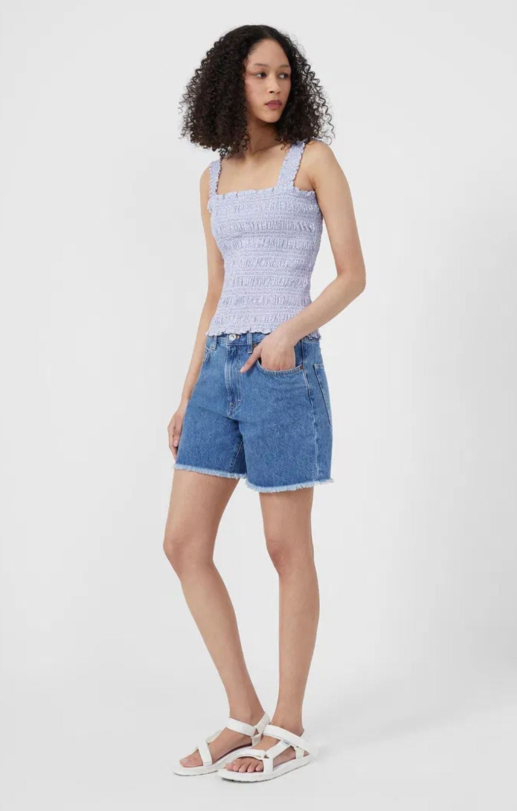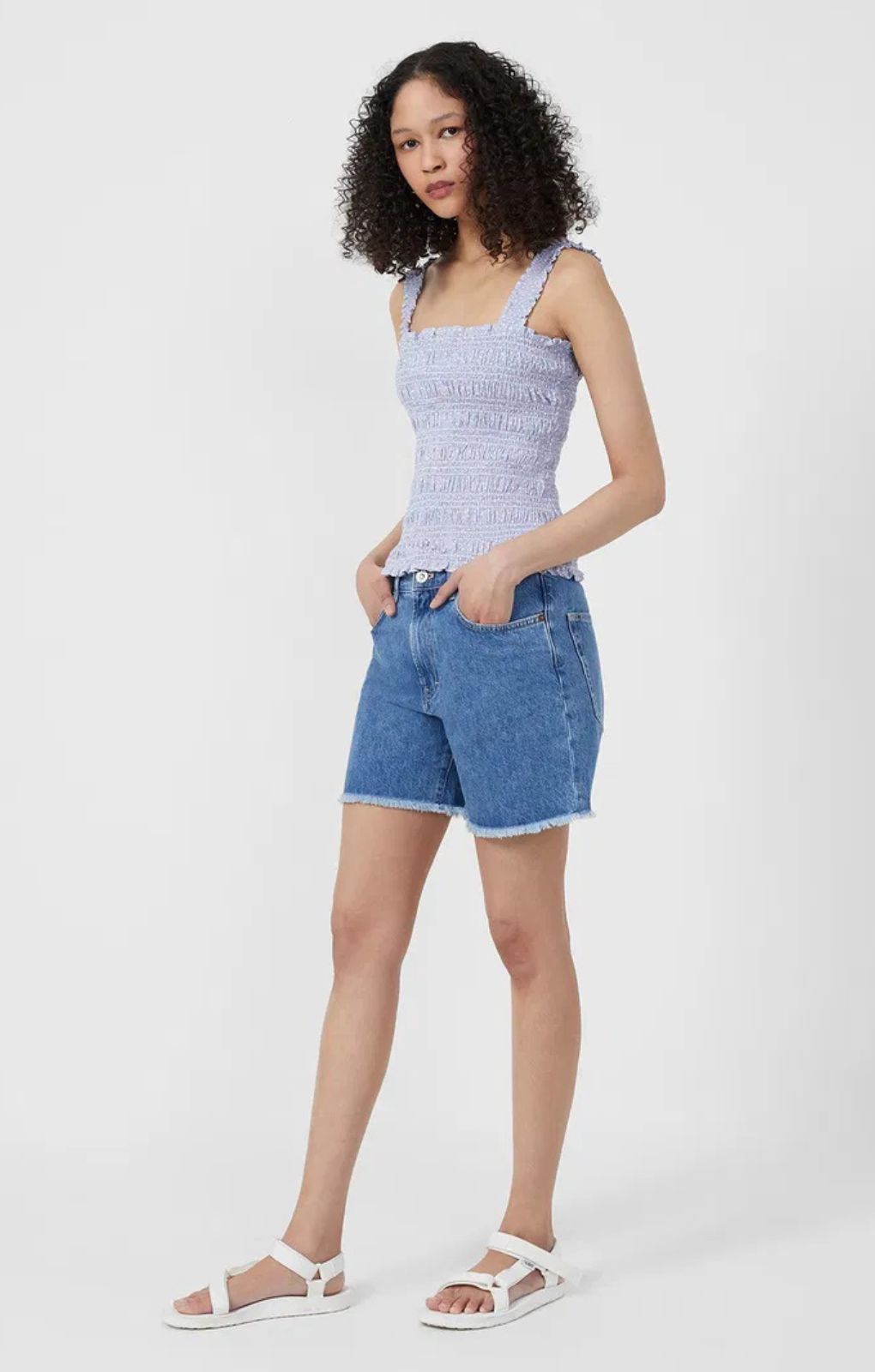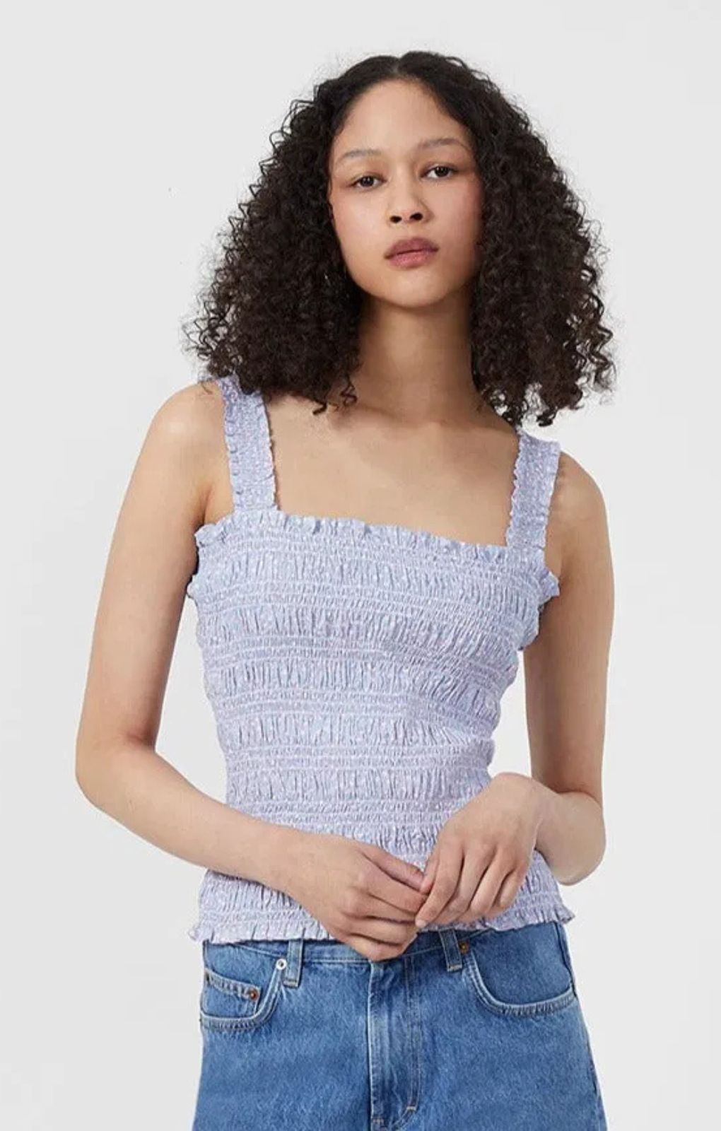 French Connection Elao Rhodes Organic Poplin Smock Blue TopWant to tick all the trend boxes? The Elao Rhodes Poplin Smock Top has a square neckline and peplum hem, all awash with a floral print.