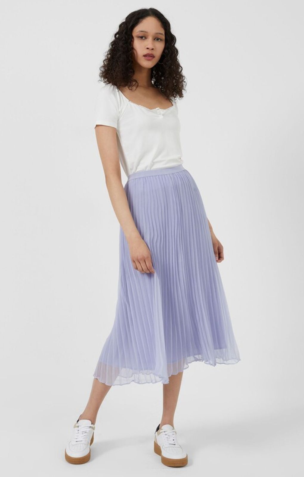 The French Connection Ella Pleated Midi Skirt is a versatile garment that can seamlessly take you from professional settings to evening outings. It is designed with an elasticated waistband for a comfortably secure fit on the waistline. The midi length exudes sophistication while the pleats add flair and movement to the garment.