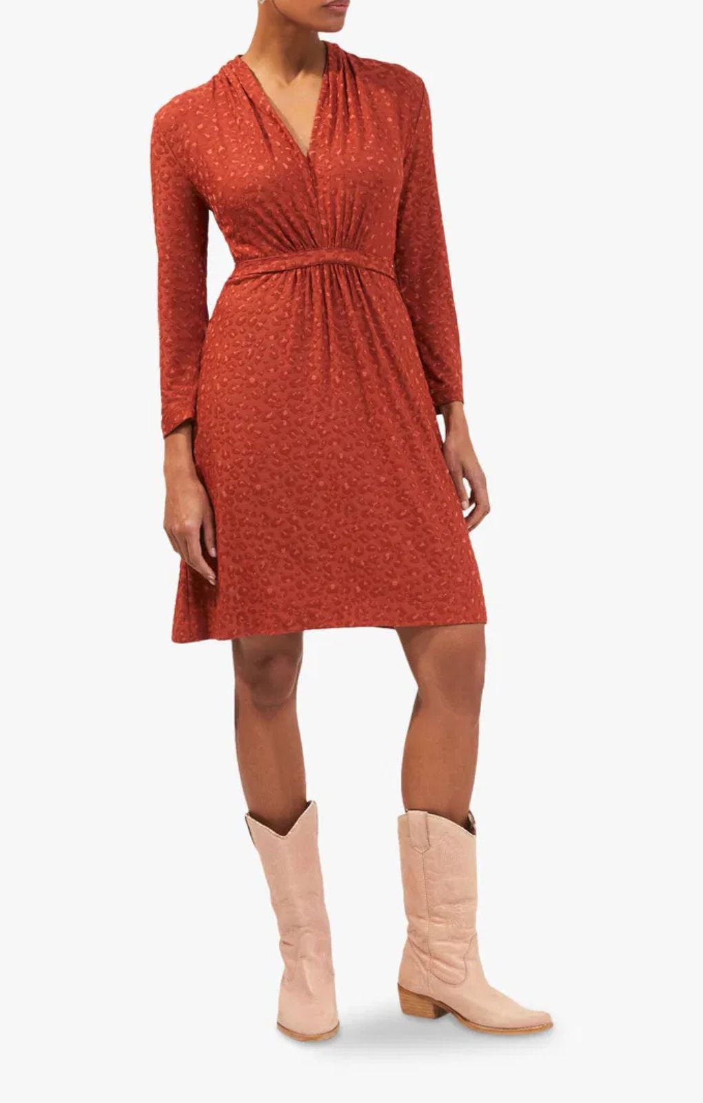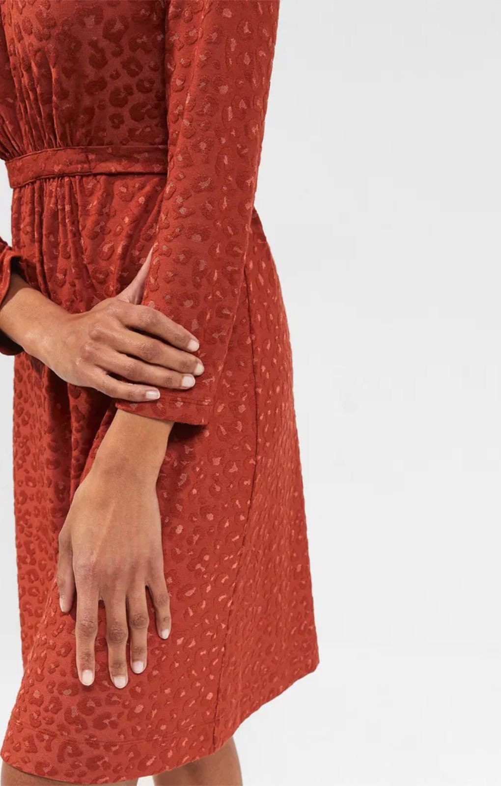 Strike the perfect balance between work and play in the Sibley Eco Jacquard Jersey Dress. The knee-length silhouette has a jacquard design and empire waist.