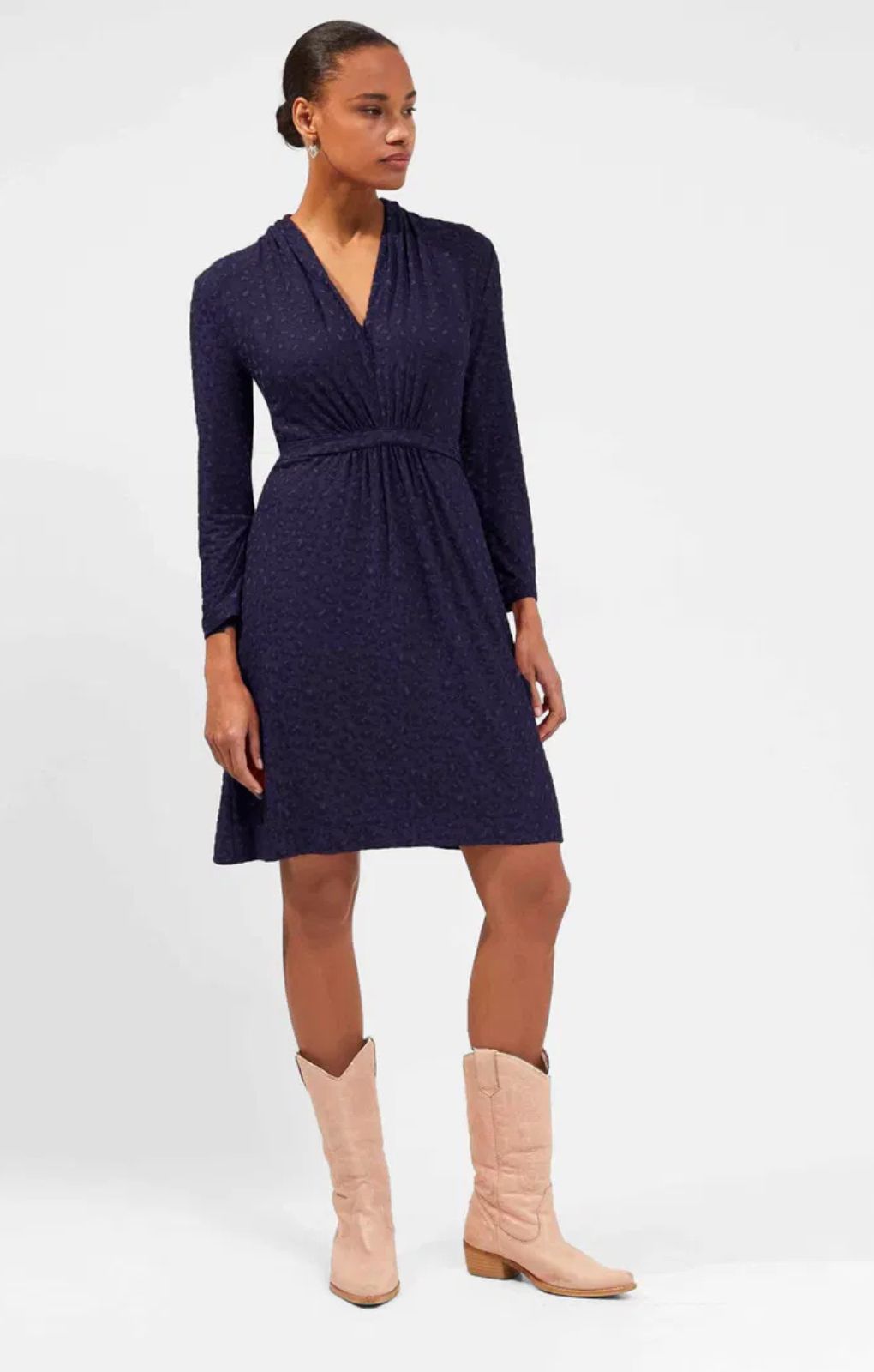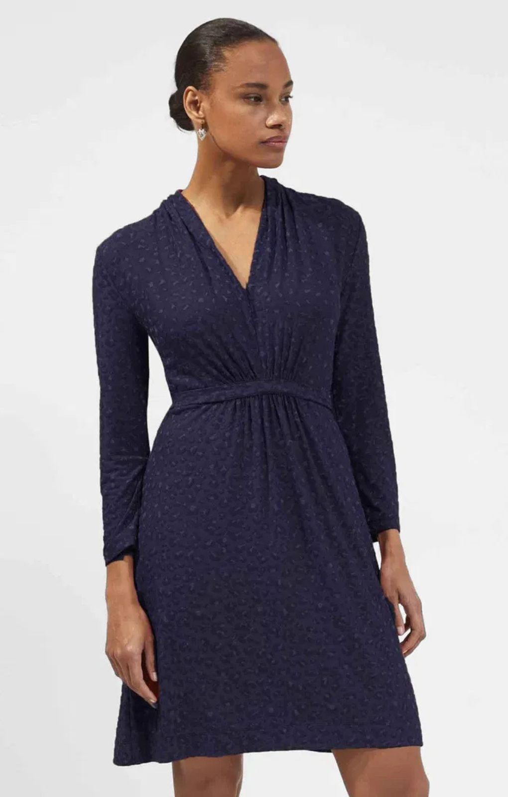 French Connection Sibley Eco Jacquard Navy Jersey Dress