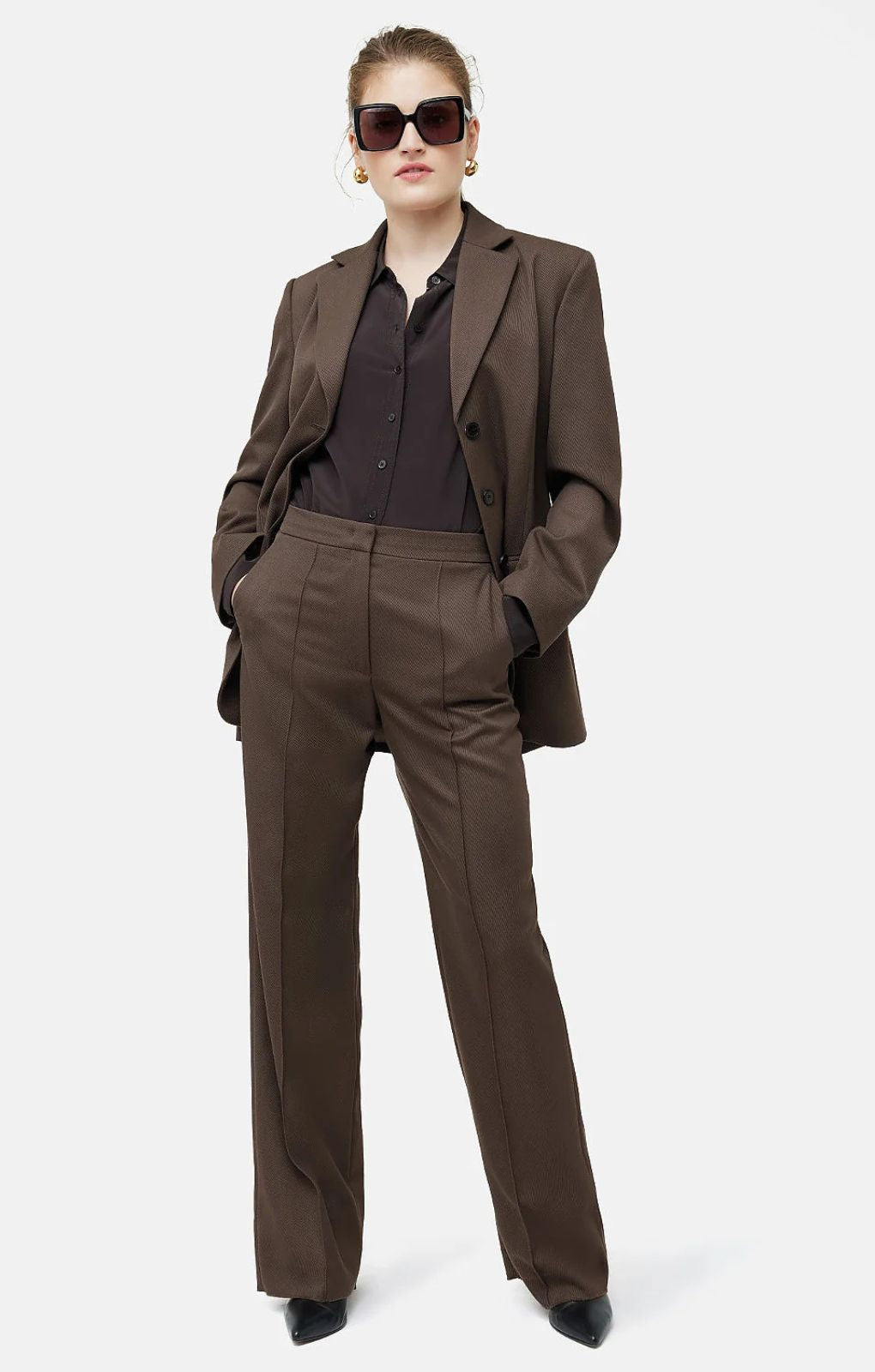 Our easy fitting Hale trouser is cut for Spring in a Japanese soft, structured wool twill fabric from Takisada. Clean waistband, front fly fastening with an easy loose leg shape and feature stitched front leg seam. Side pockets and back jetted pockets.