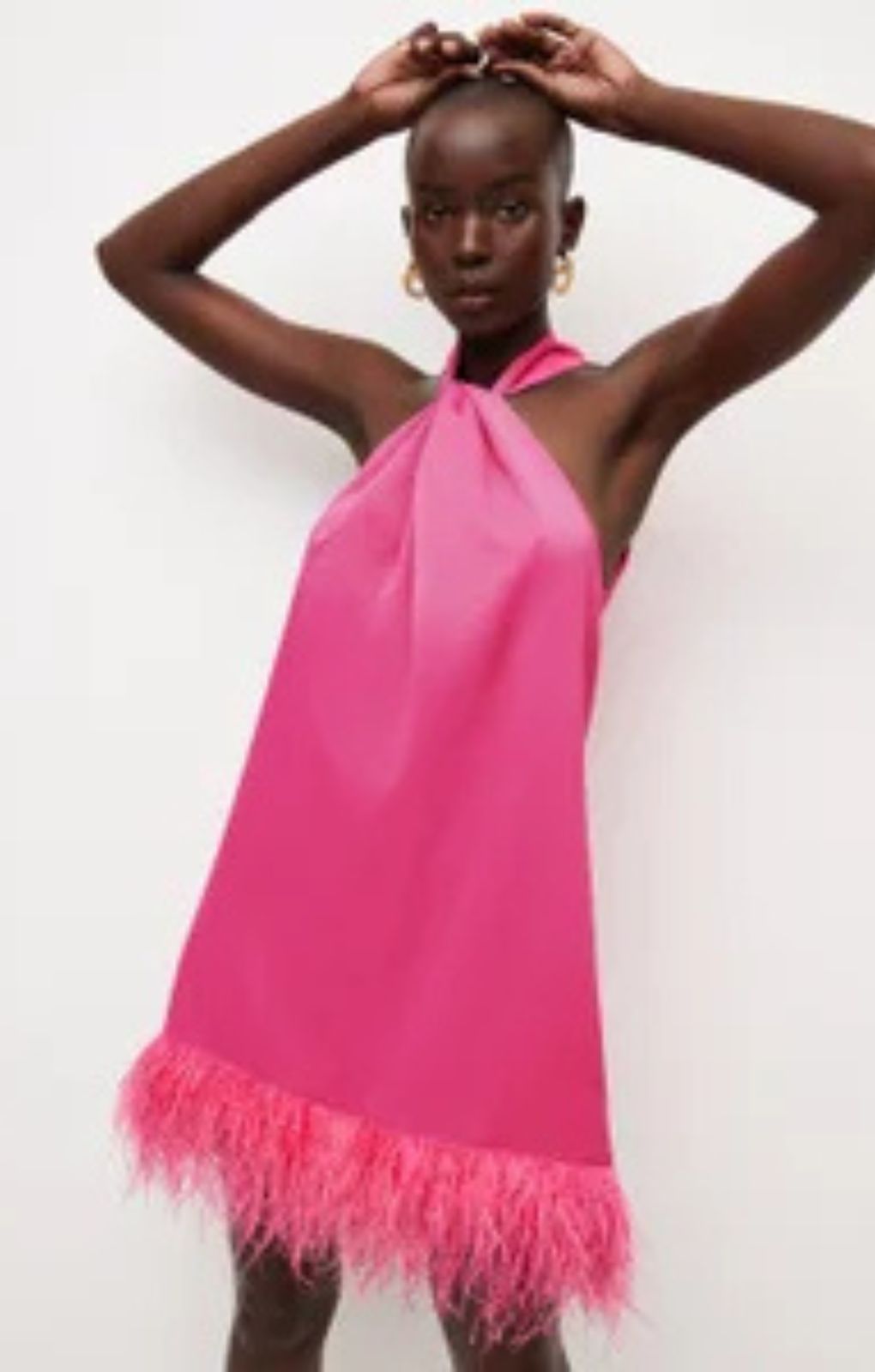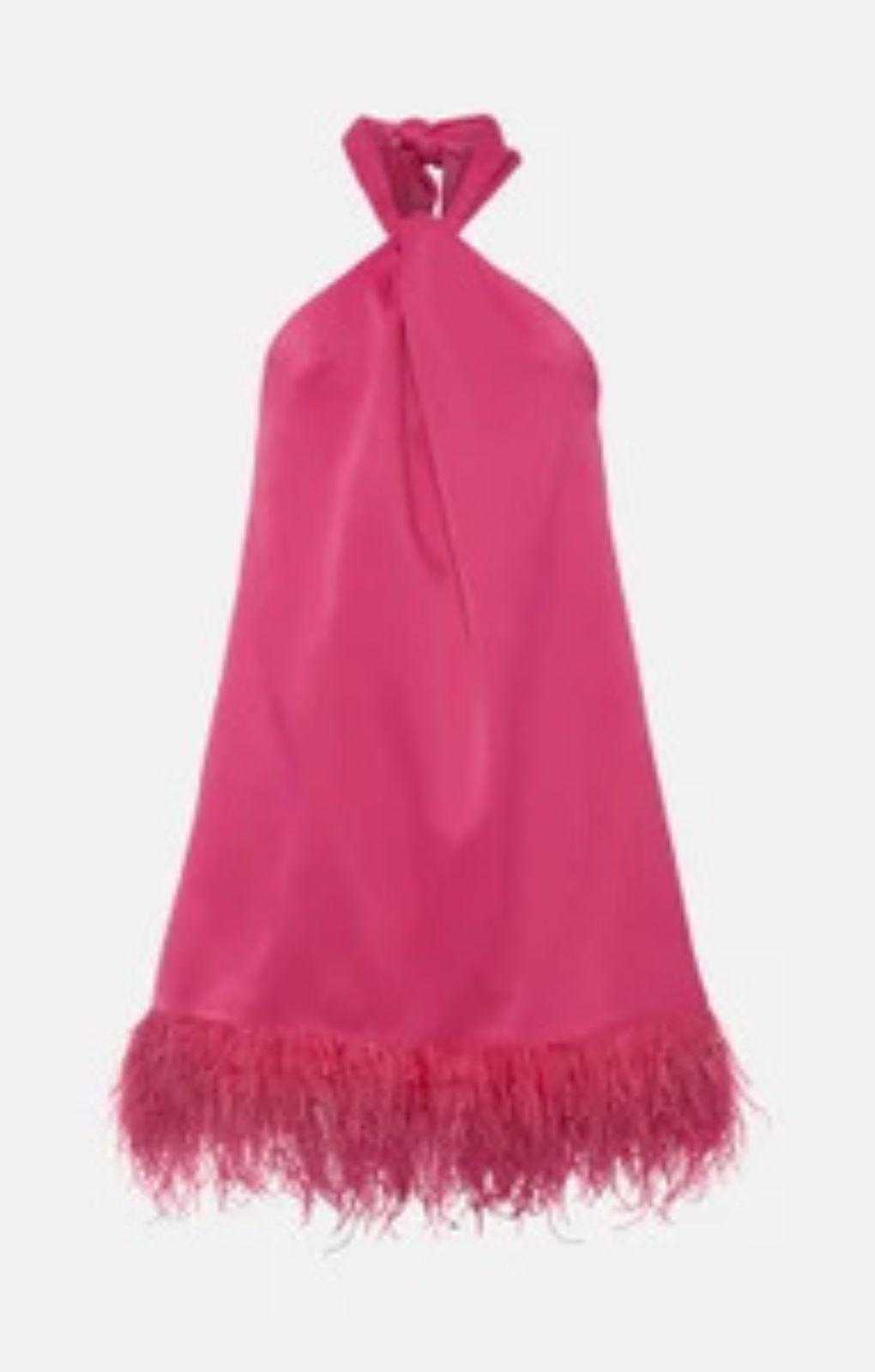 Karen Millen Pink Satin Back Crepe Feather Hem Halter Mini Dress