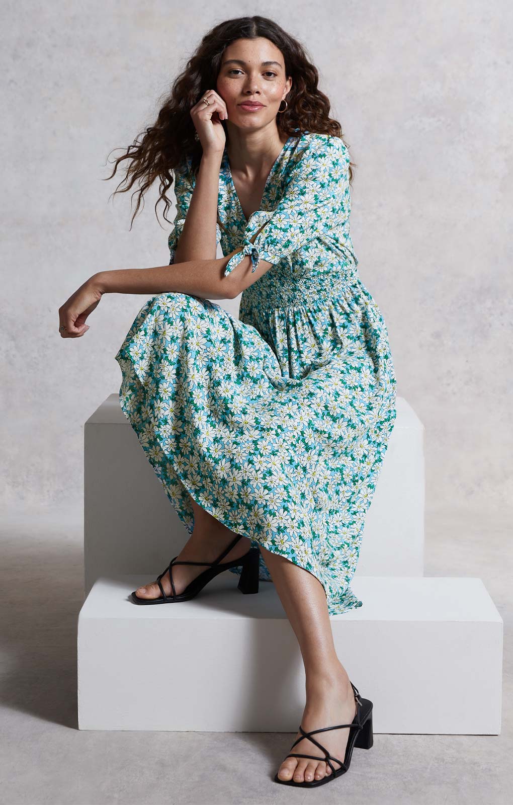 This daisy print dress from our Marks and Spencer X Ghost collaboration is blooming beautiful. It's cut in a regular fit, with a flattering shirred waist to highlight your figure and a feminine v-neckline.