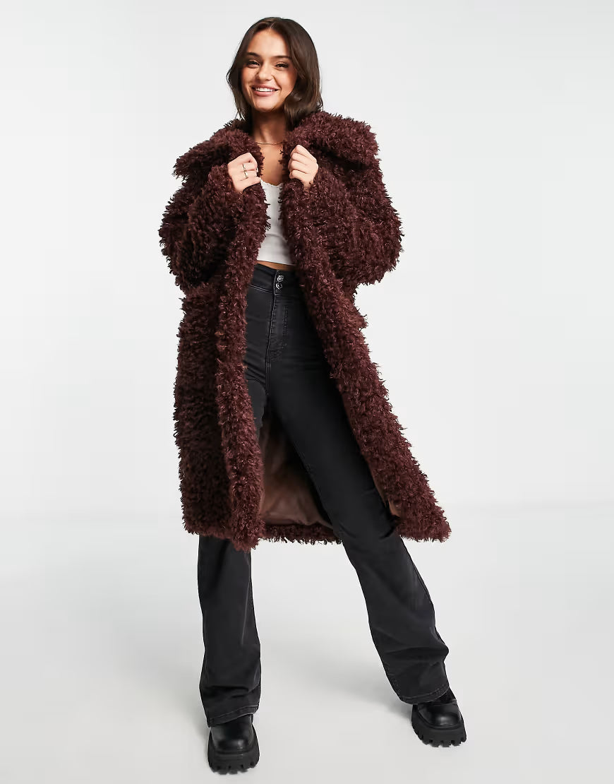 That new-coat feeling every single month when you rotate your outerwear. Rotate this Miss Selfridge Fluffy Borg Coat In Chocolate next. Featuring: