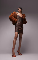 Miss Selfridge Fluffy Borg Coat In Chocolate
