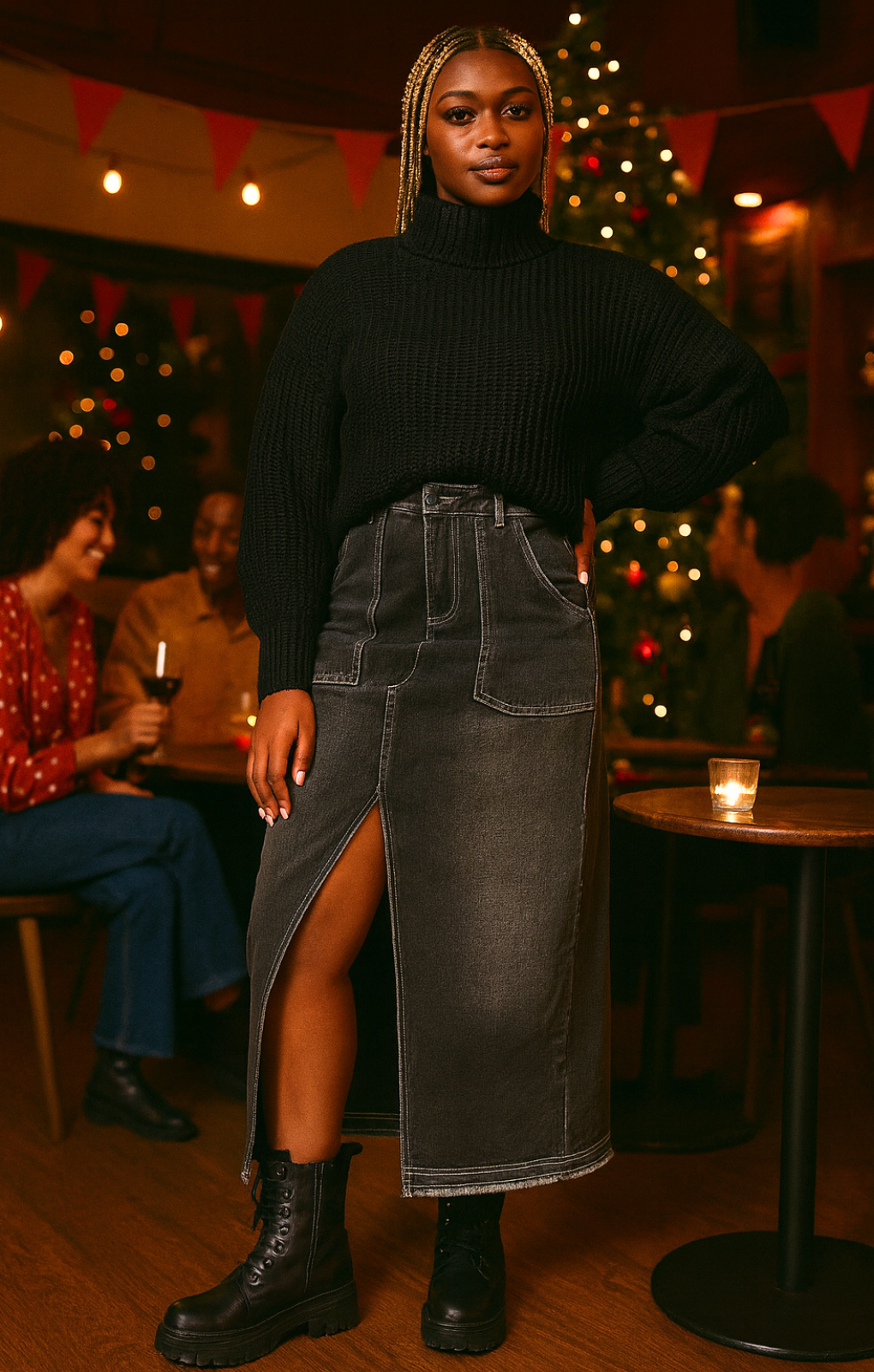 Miss Selfridge Pocket Detail Maxi Skirt In Black Wash With Contrast Stitching Featuring: